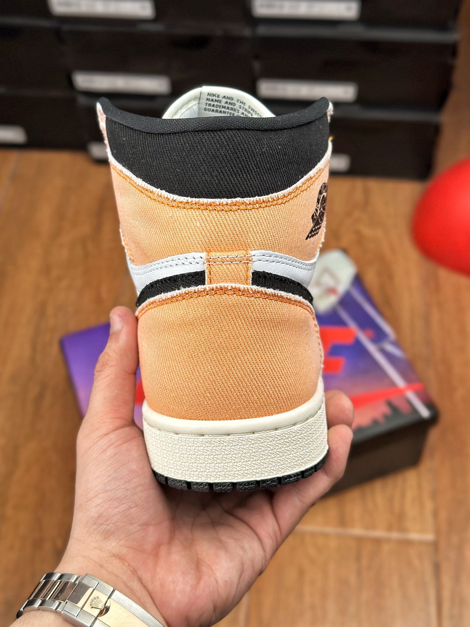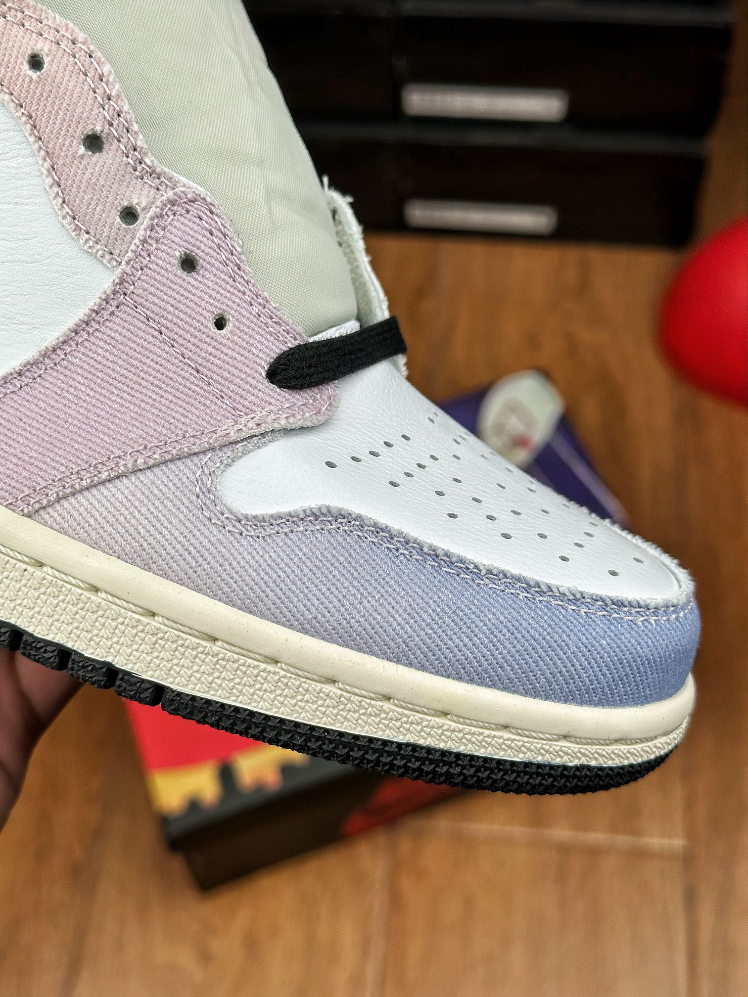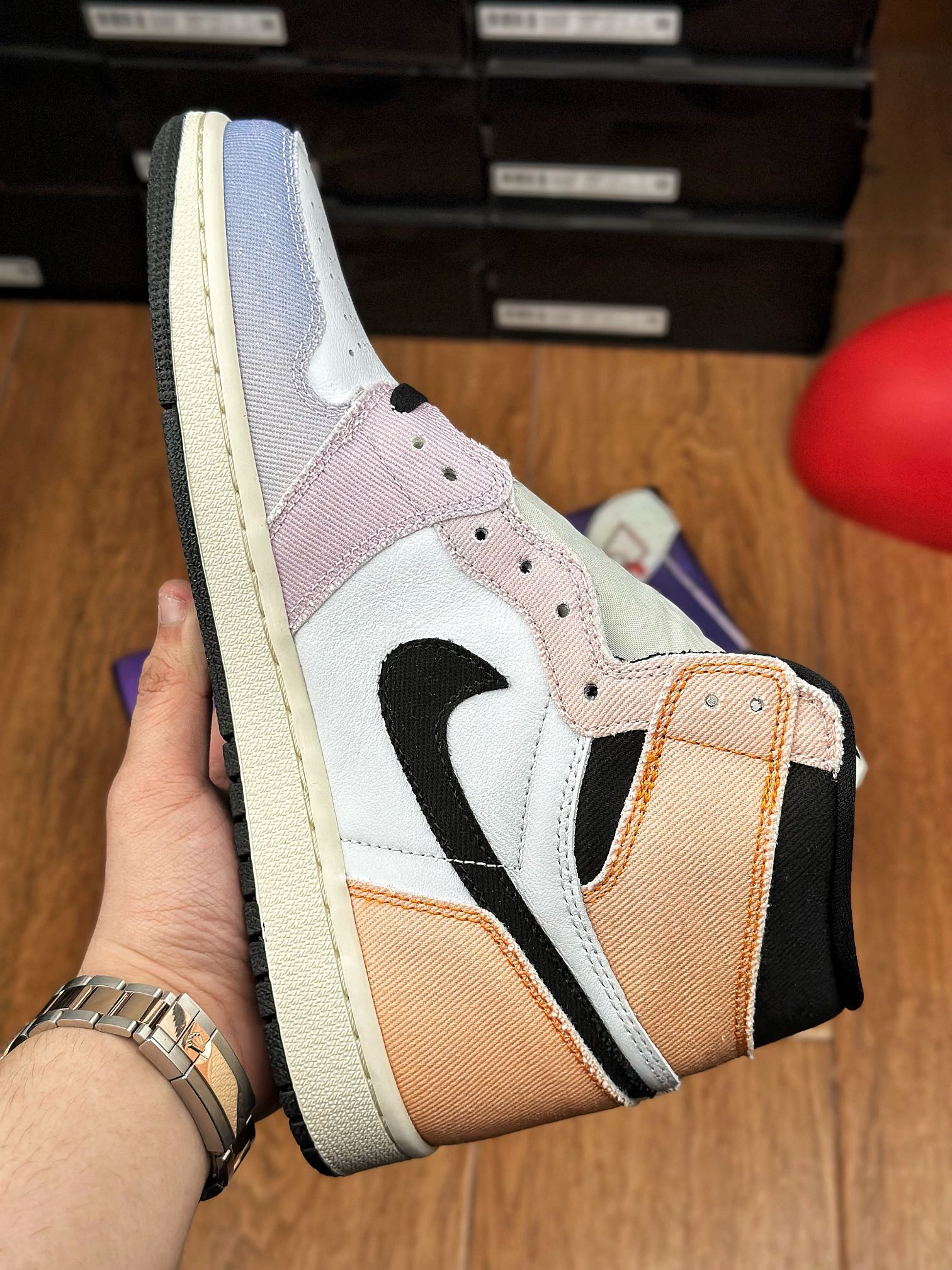 Jordan 1 High „Skyline“ byly vydány v roce 2023. Tenisky mají svršek z bílé kůže a duhové látky pro jedinečný vzhled. Na vrchní části tenisky nalezneme tradiční černé Wings logo.