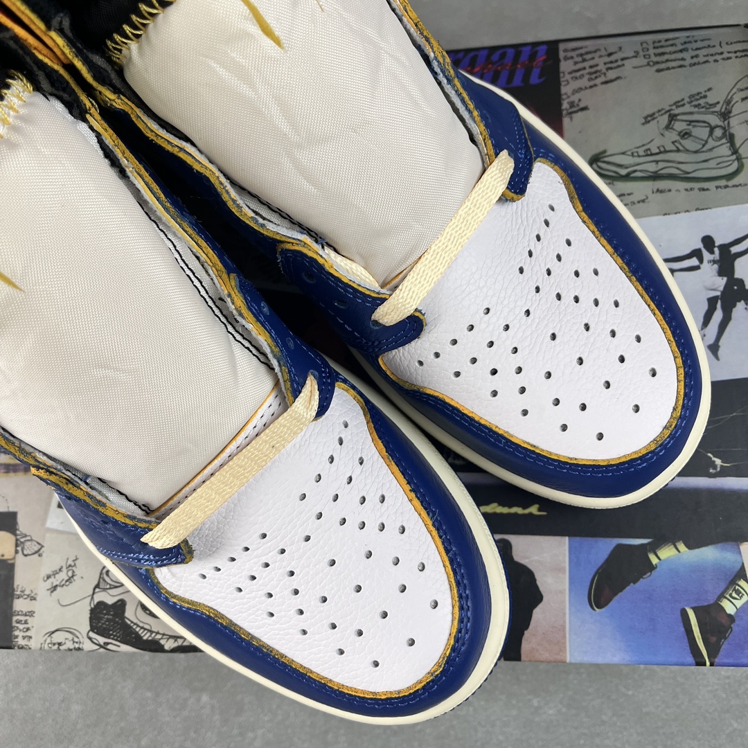 Vysoké tenisky Air Jordan 1 Retro High Union Los Angeles Blue Toe ve spolupráci se značkou z Los Angeles – Union LA. Tyto Jordany jsou jedny z nejvíce limitovaných a exkluzivních tenisek vůbec. Napodobují old school/vintage vizuální zpracování jako právě tenisky, které Michael Jordan v roce 1985 obul na palubovku.