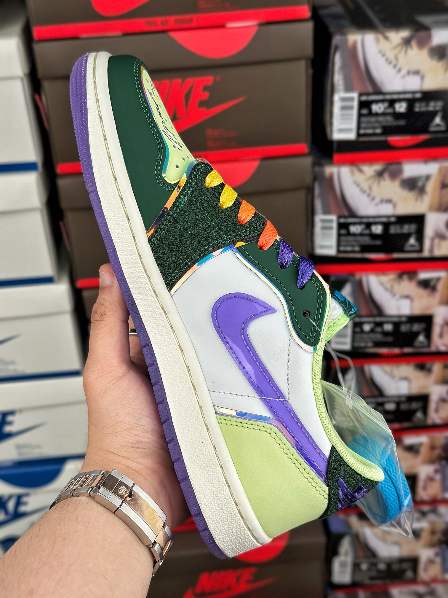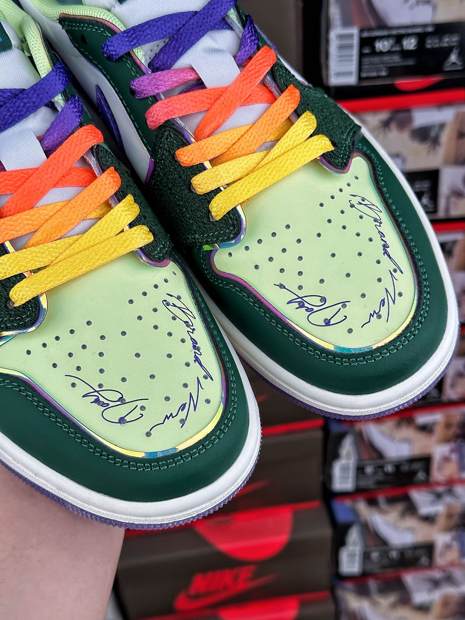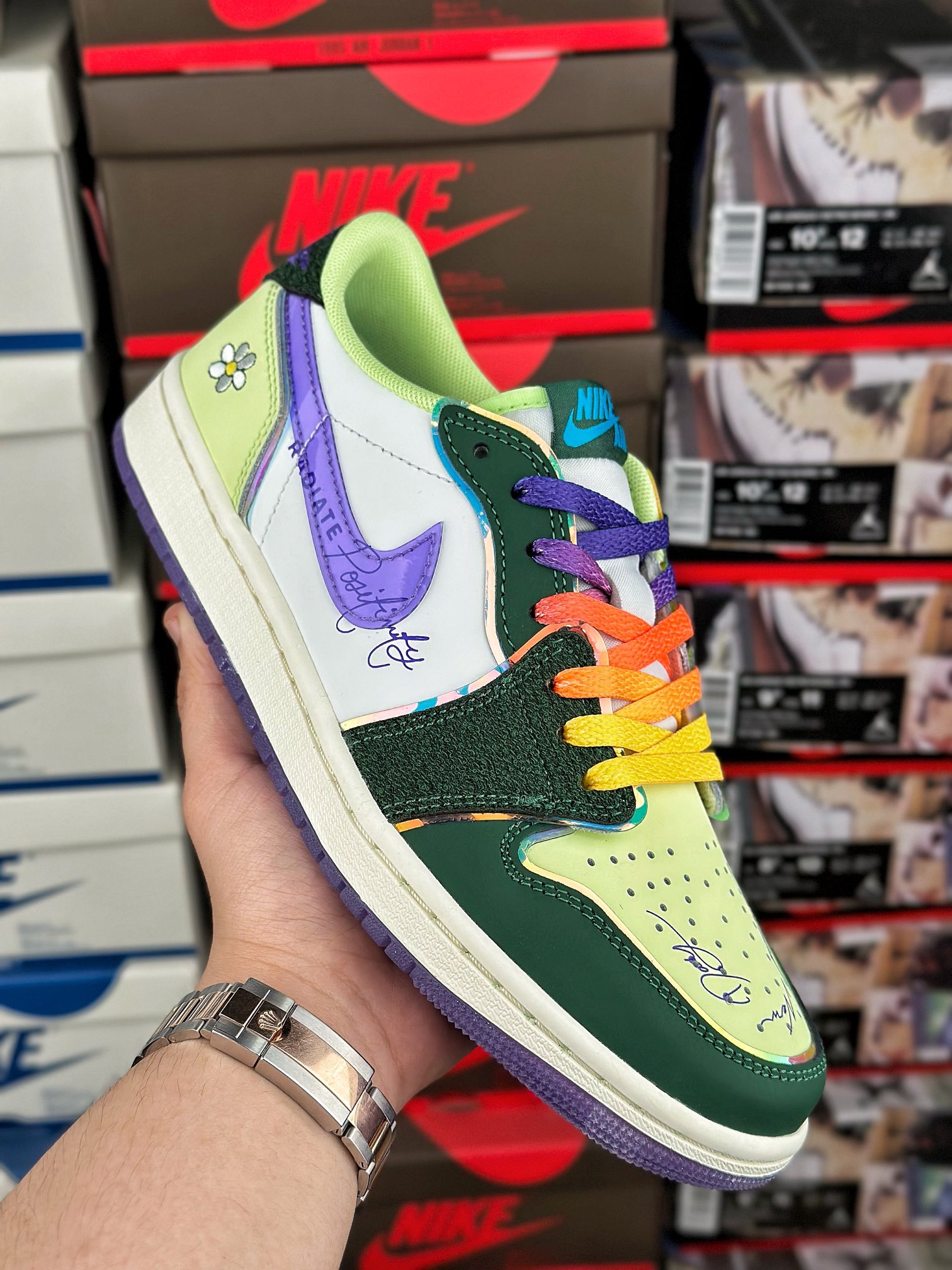 Air Jordan 1 Retro Low OG Doernbecher (2023) tvoří součást kolekce Nike Doernbecher Freestyle, která představuje práci začínajících umělců, navrhl Riddhi Mahajan. Svršek zdobený vyšívanými detaily a tištěným nápisem je dále zvýrazněn značkou a holografickým lemováním. Vzduchové odpružení pod nohama nabízí pohodlí, gumová podešev poskytuje přilnavost a perforace umožňují ventilaci. Doplněno přechodovými tkaničkami, nakupujte Air Jordan 1 Retro Low OG Doernbecher (2023) nyní s Laced.