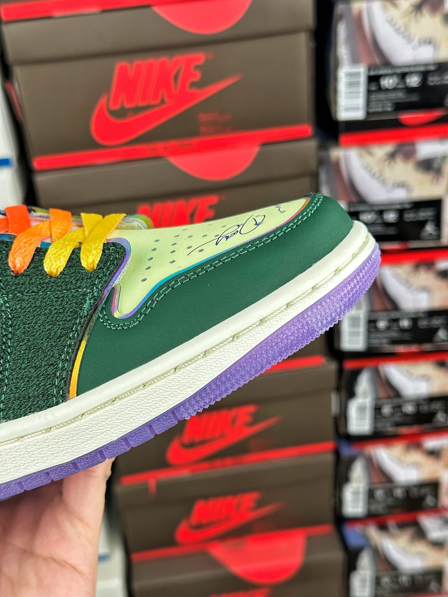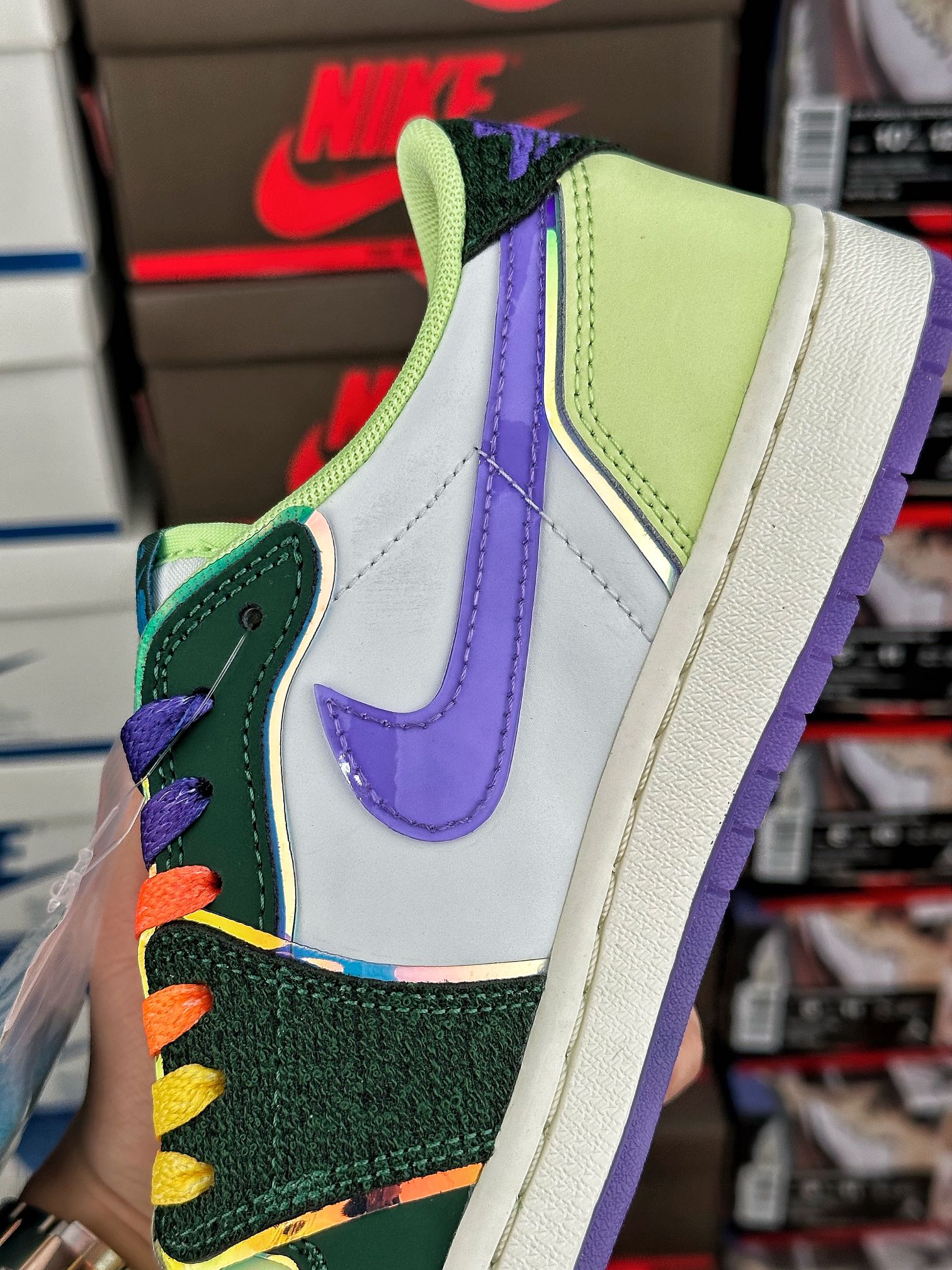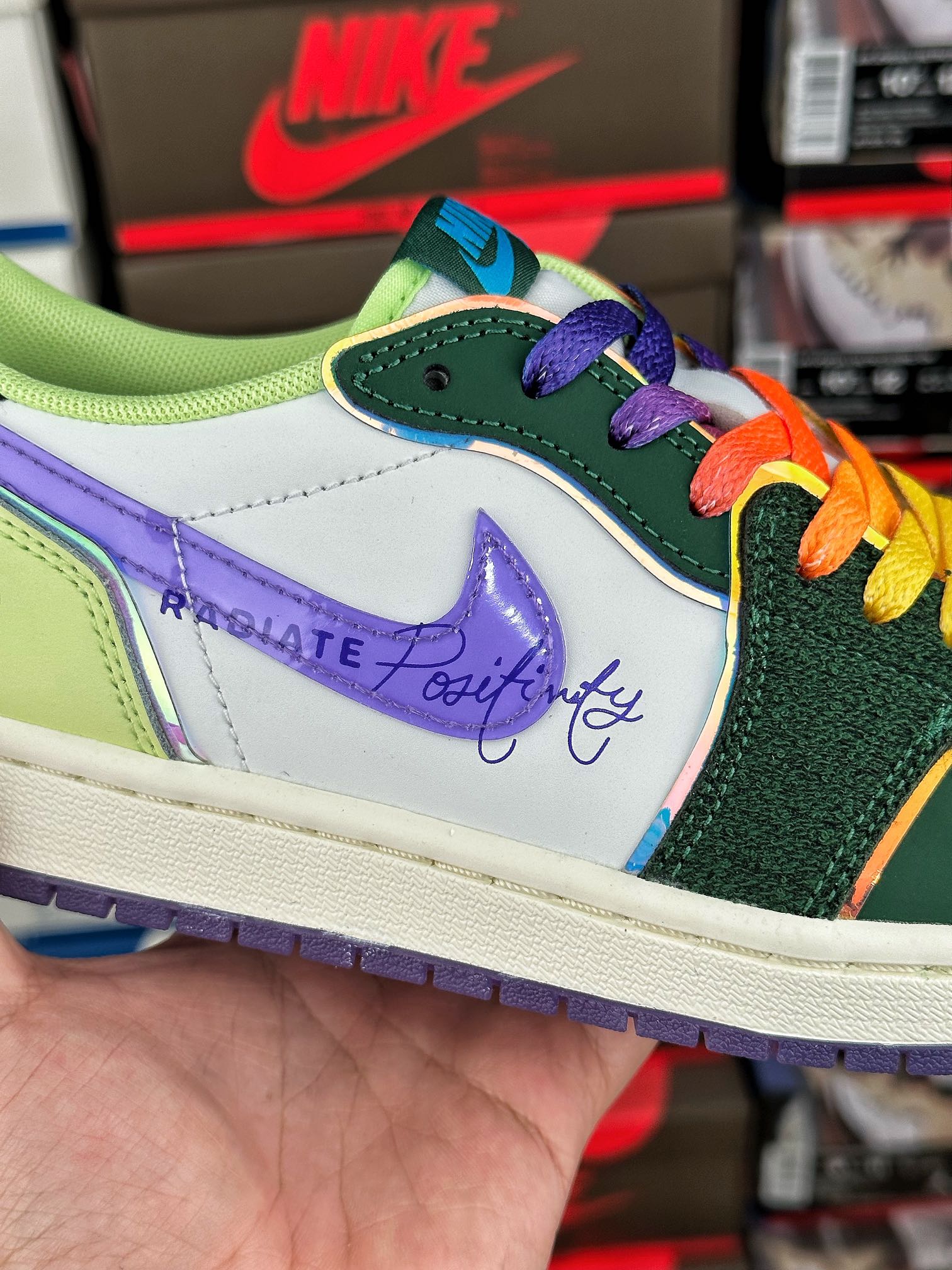 Air Jordan 1 Retro Low OG Doernbecher (2023) tvoří součást kolekce Nike Doernbecher Freestyle, která představuje práci začínajících umělců, navrhl Riddhi Mahajan. Svršek zdobený vyšívanými detaily a tištěným nápisem je dále zvýrazněn značkou a holografickým lemováním. Vzduchové odpružení pod nohama nabízí pohodlí, gumová podešev poskytuje přilnavost a perforace umožňují ventilaci. Doplněno přechodovými tkaničkami, nakupujte Air Jordan 1 Retro Low OG Doernbecher (2023) nyní s Laced.