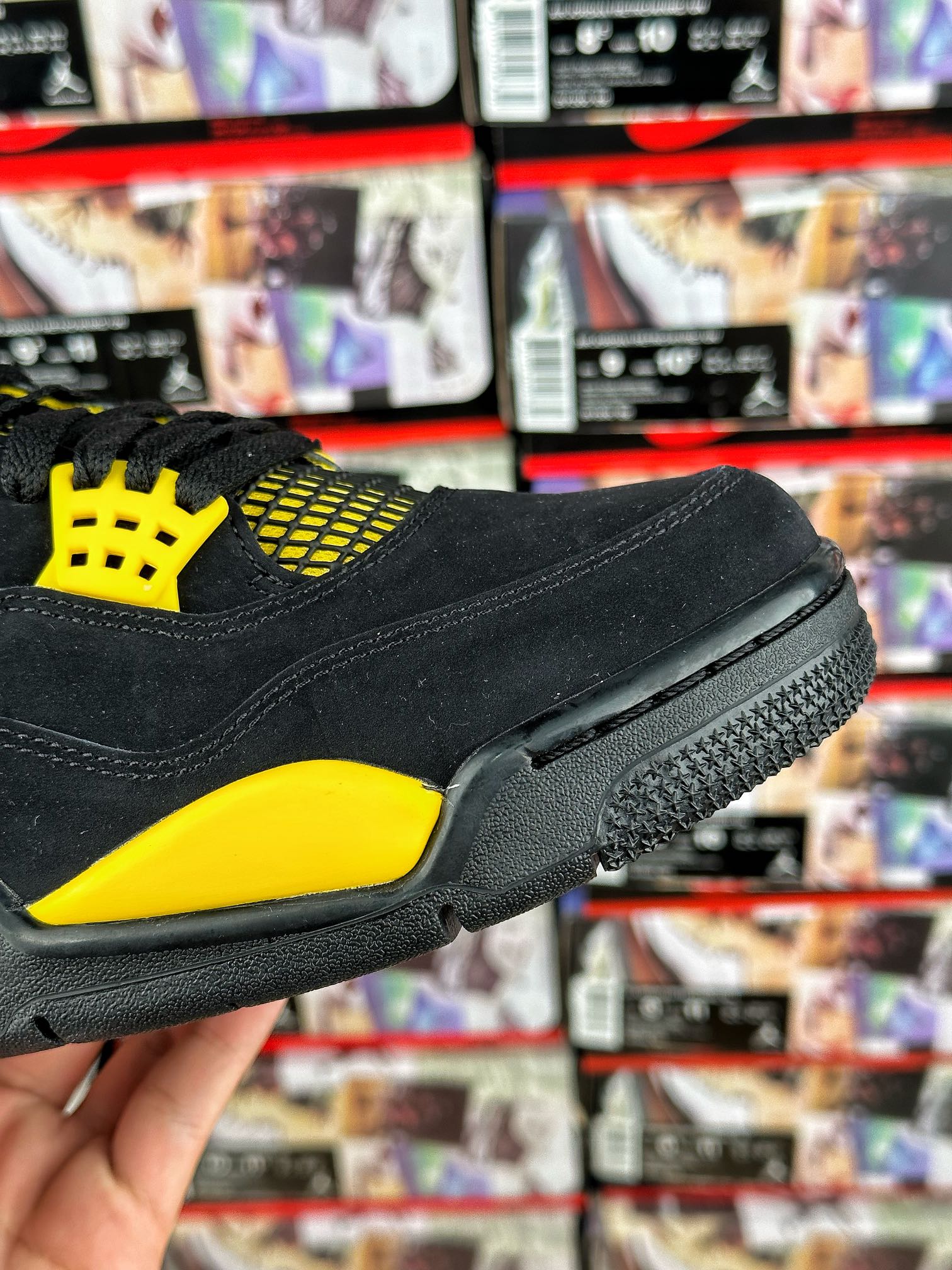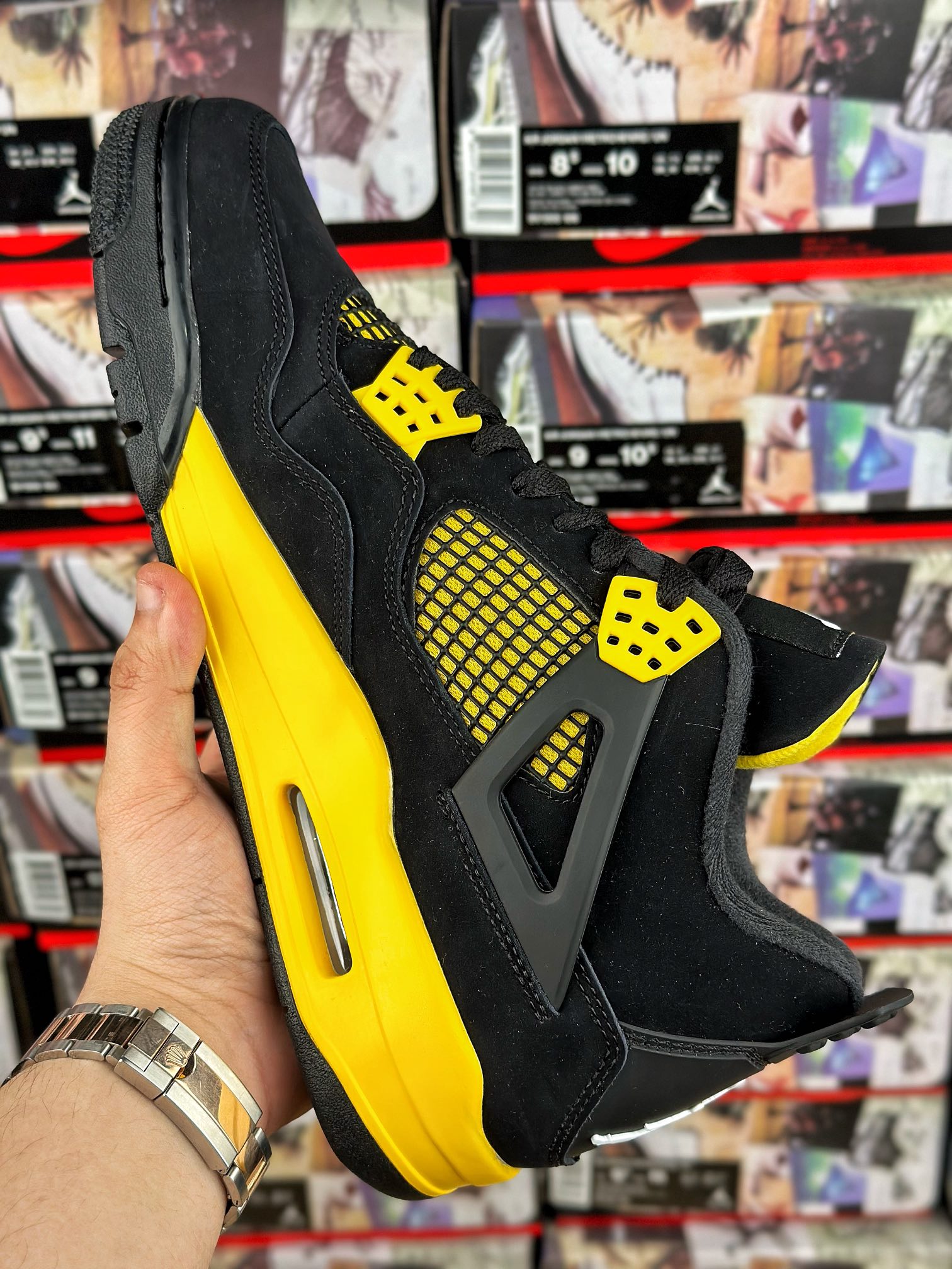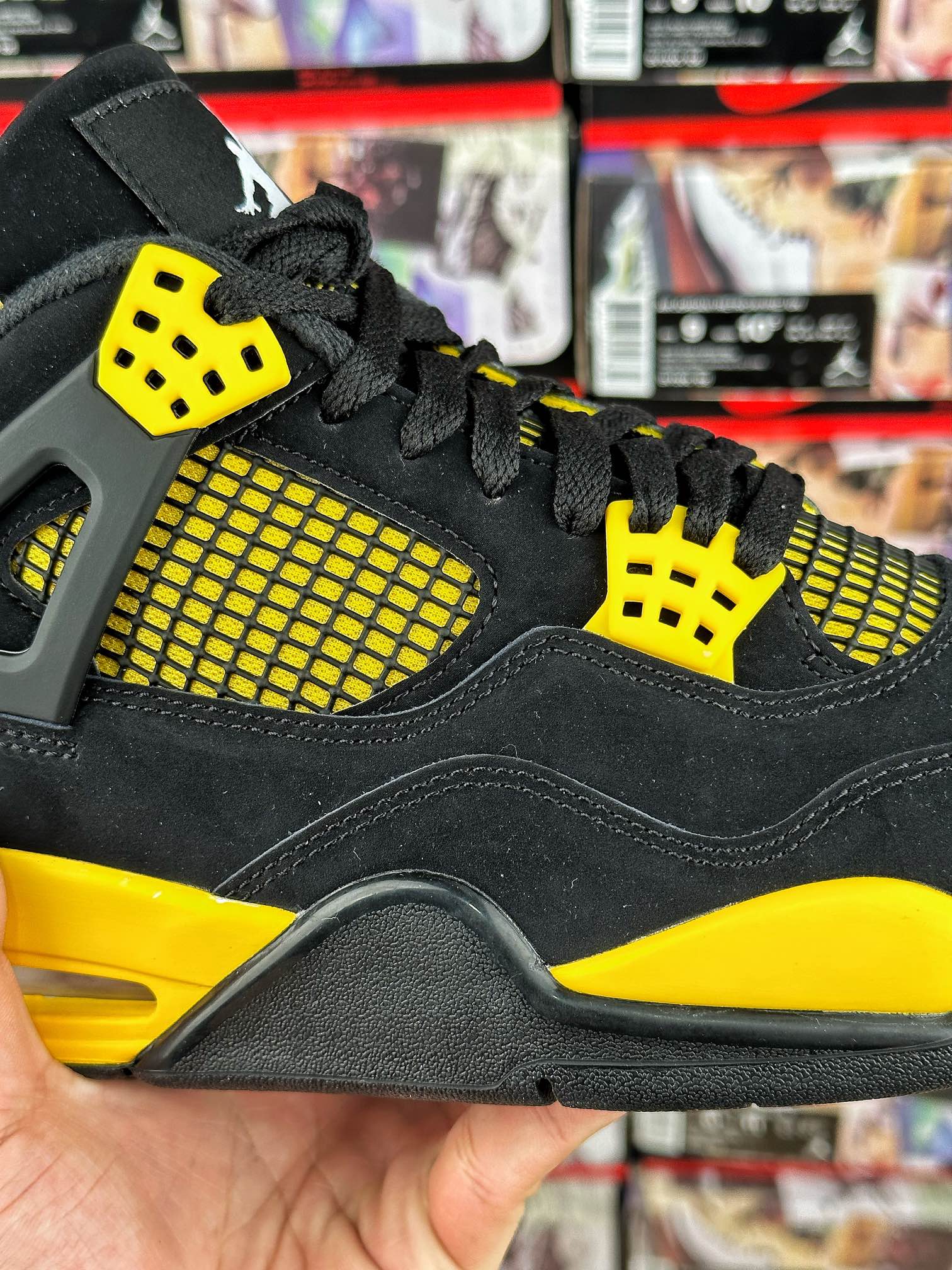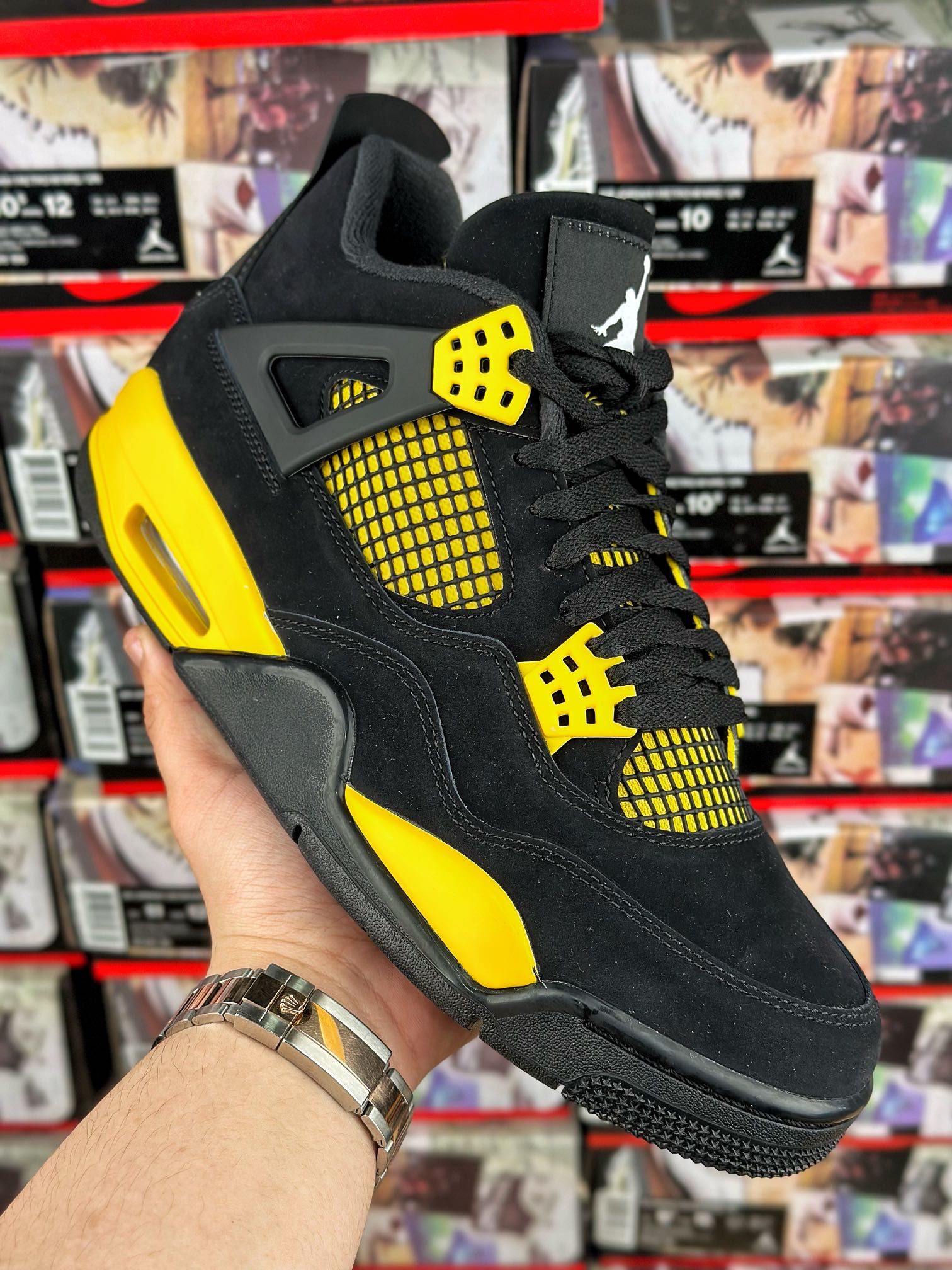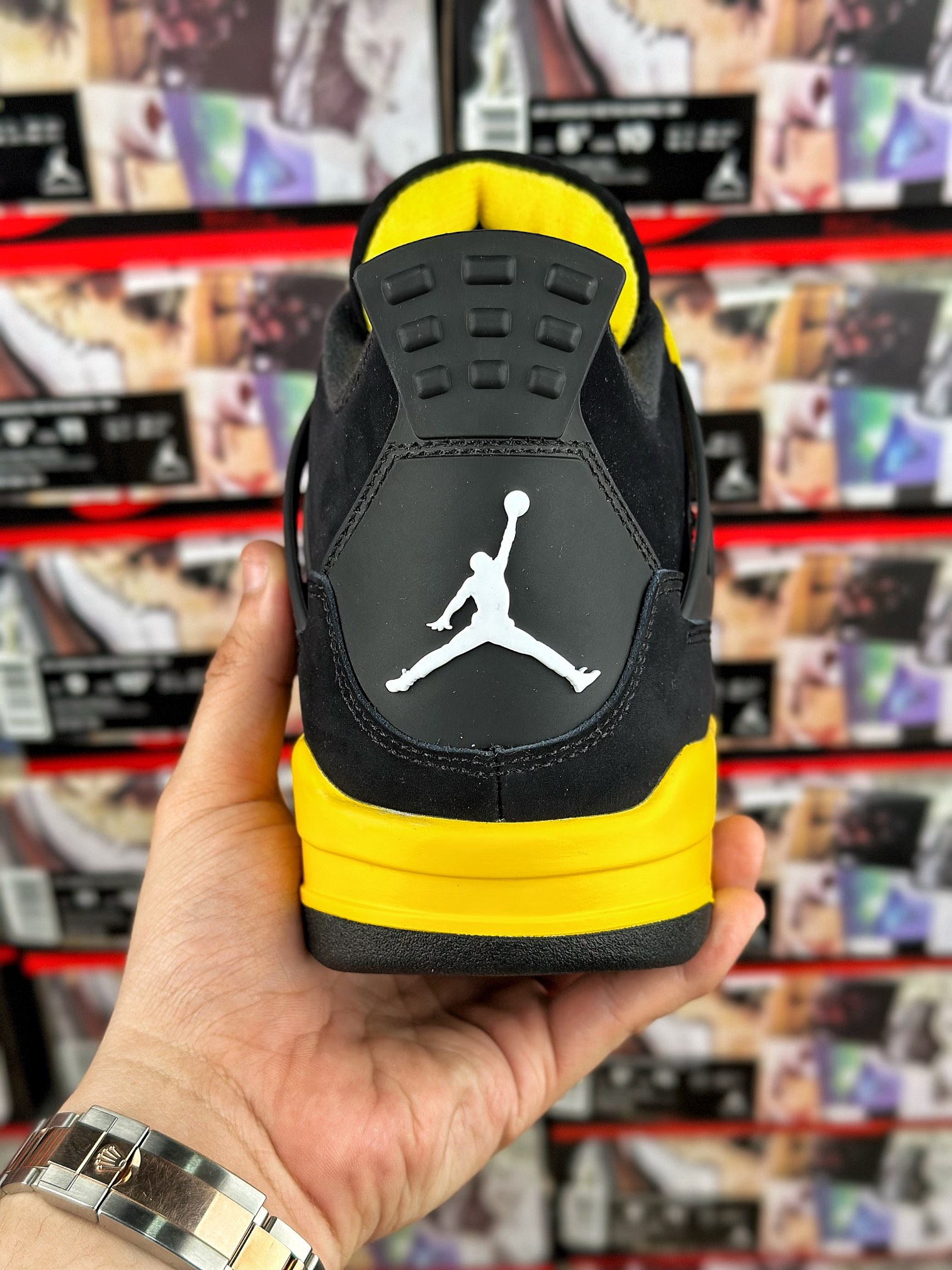 Bota s historickým významem a ikonickým stylem je Jordan 4 Retro Thunder. Poprvé byly představeny jako limitovaná edice v roce 2006. Výrazný design těchto tenisek, který byl motivován silou bouře, jim pomohl stát se známými. Barevné schéma černé a žluté znamená ráznost a statečnost. Tyto tenisky jsou módní klasikou díky síťovaným vložkám a značce Jumpman. Jordan 4 Retro Thunder není jen módní varianta; slouží také jako připomínka minulosti a horlivých příznivců Michaela Jordana.