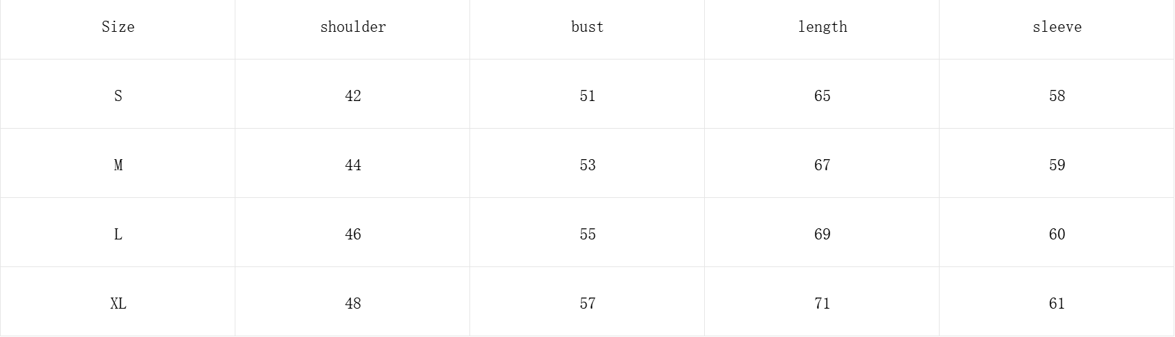 S, M, L, XL