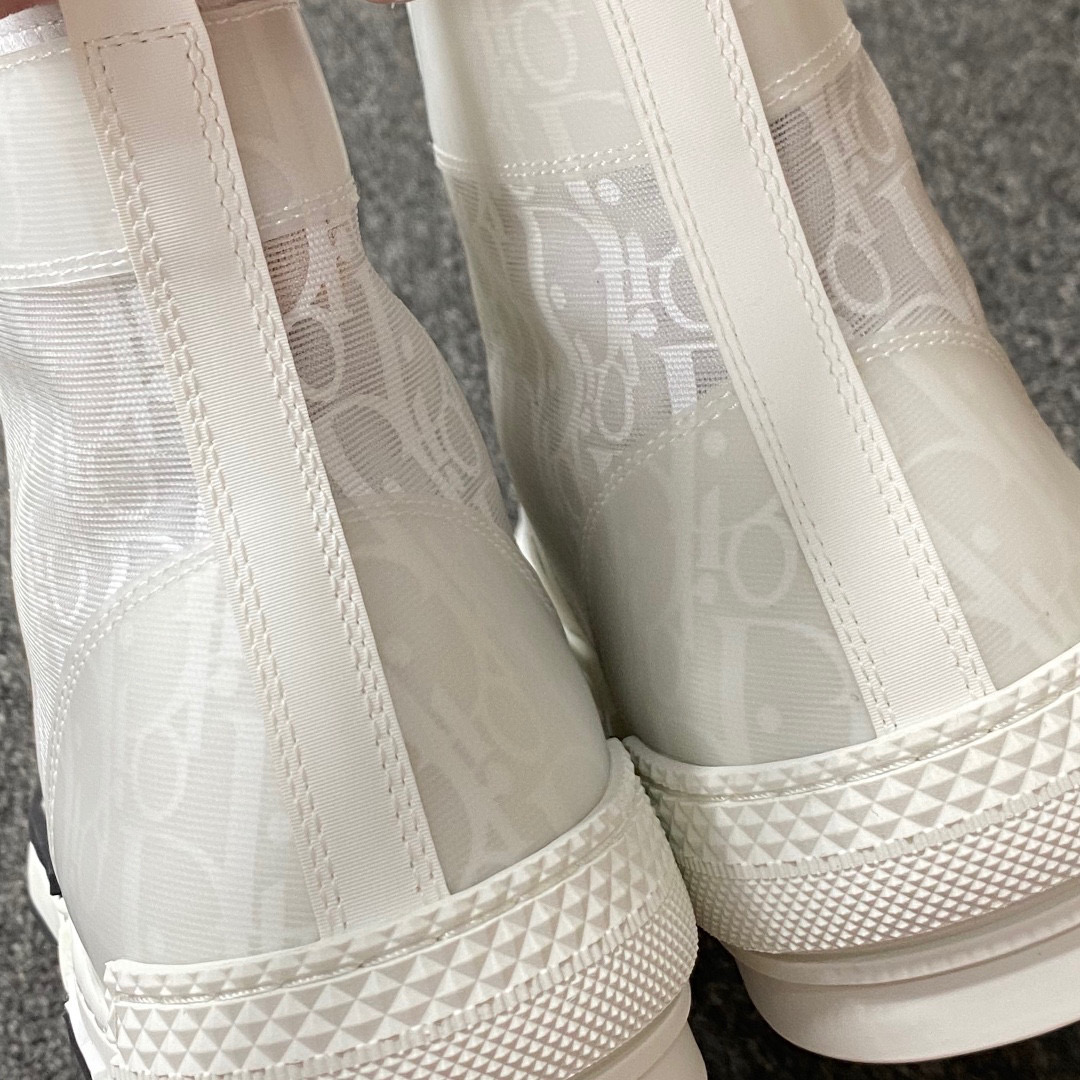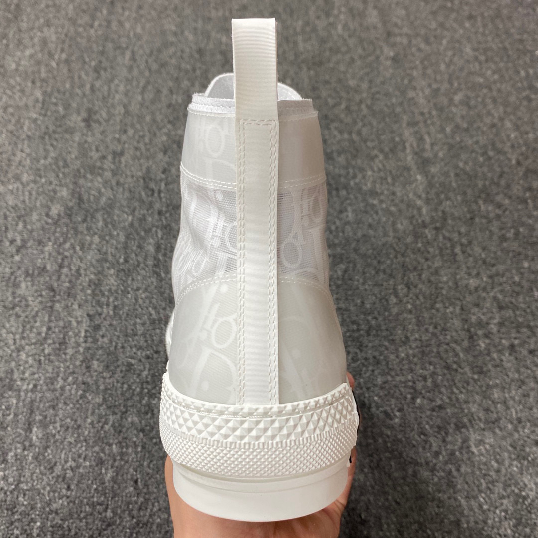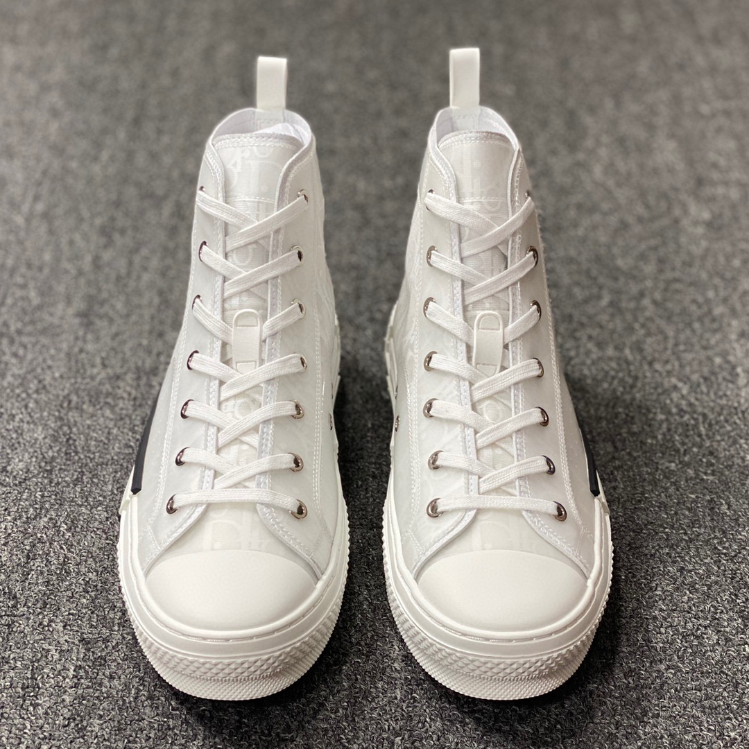 První kolekce tenisek Dior Homme od návrhářky Kim Jonesové zahrnuje boty Dior B23 High ‚Dior Oblique‘, které debutovaly na pařížském týdnu módy v prosinci 2018. Tato moderní interpretace na klasickém vysokém tenisce obsahuje klasický vzor Dior Oblique vytištěný na technickém plátně horní. Překrytí z čisté síťoviny dodává nádech inspirovaný módou, zatímco poutko z teletiny dodává luxusní akcent. Tento design doplňuje dvoubarevná gumová podrážka pod nohama zdobená logem nárazníku značky Dior.
