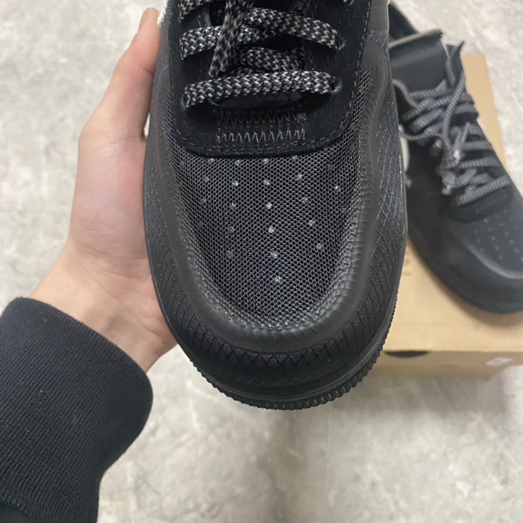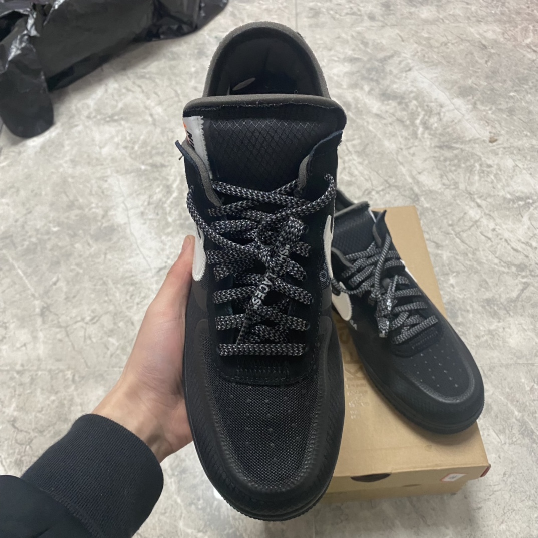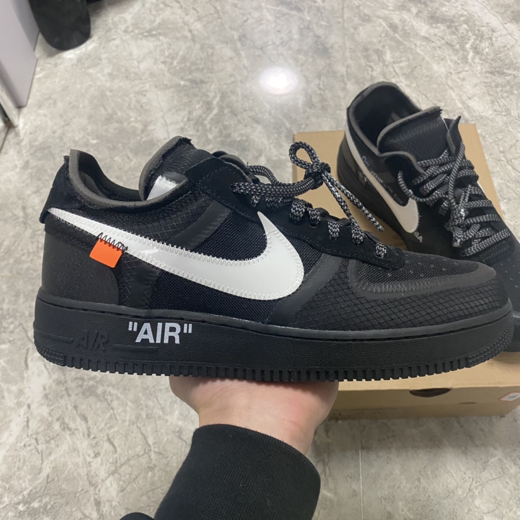 Tyto společné tenisky Nike Air Force 1 Low x Off-White™ x Black se vyznačují kombinací konvenčních aspektů a dekonstruovaných designových detailů, aby vytvořily AF1 s klasickým vzhledem, který má také svůj osobitý charakter. Podešev, která je celá v černé barvě, má tradiční konstrukci jako otočné kruhové úchopové linie probíhají v kruzích kolem dvou centrálních disků v patě a přední části chodidla, aby nositeli dodali jistotu při pohybu. To je spojeno se zapouzdřeným Air v patě, což je zvýrazněno jak reliéfním písmem na boční mezipodešvi, tak výrazným textem Air, který se vyjímá v bílé barvě těsně nad ním.