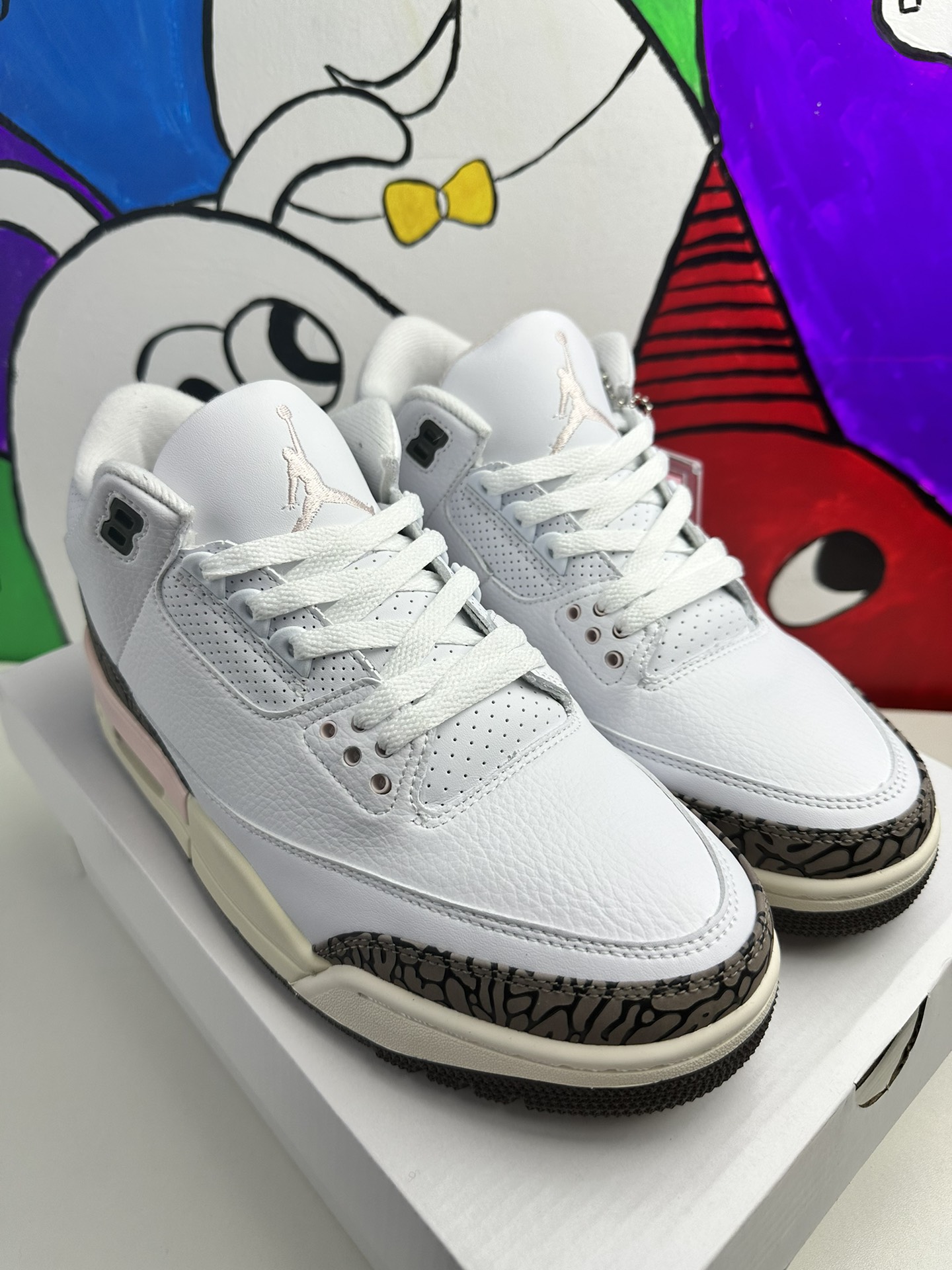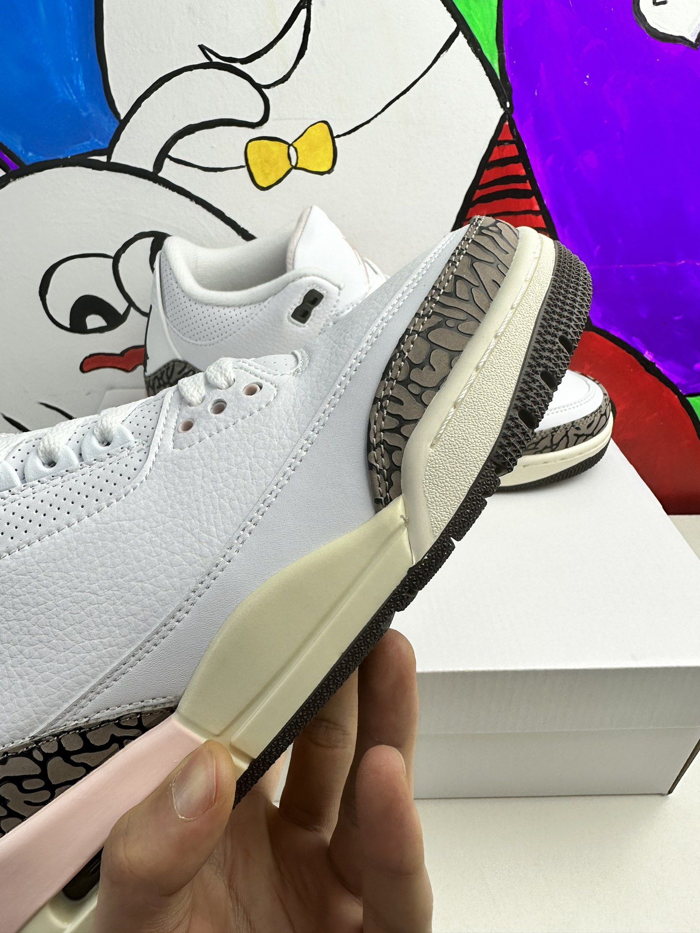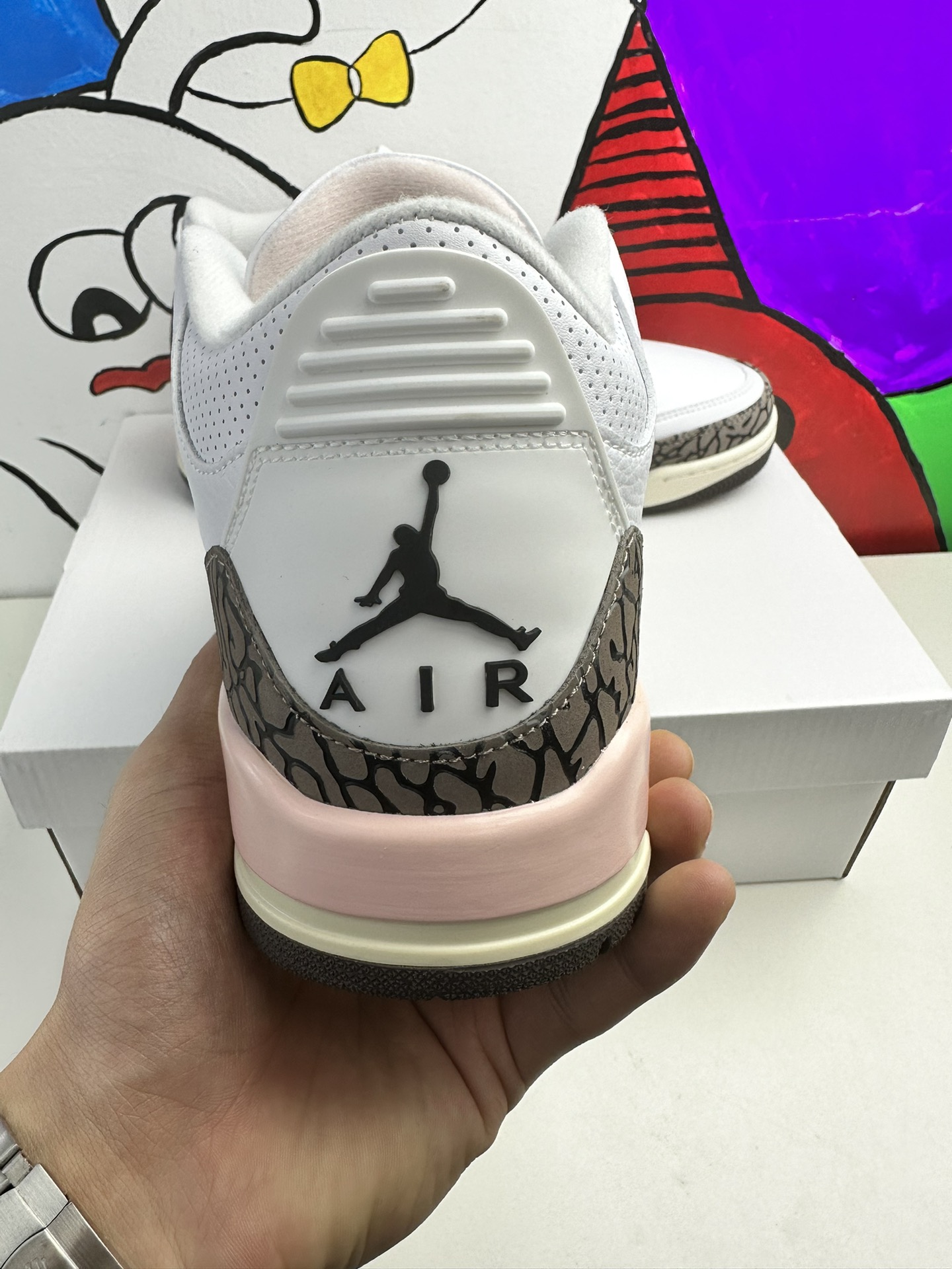 Kotníkové tenisky Air Jordan 3 Retro Neapolitan Dark Mocha mají na svém svršku kombinaci bílé, růžové a hnědé barvy. Zvláštnosti je vzor s motivem slonoviny použitý na některých částech tenisky.