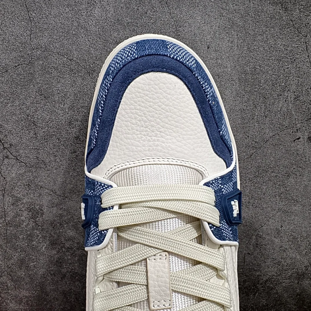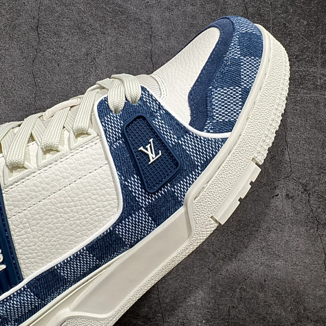 Ikonické tenisky LV Trainer jsou v této sezóně znovu představeny v kombinaci džínoviny Monogram a zrnité teletiny s reliéfem Monogram. Kontrastní barvy a materiály podtrhují propracovanou konstrukci tohoto modelu, který byl inspirován vintage basketbalovými teniskami. Sešití jednoho páru trvá sedm hodin.