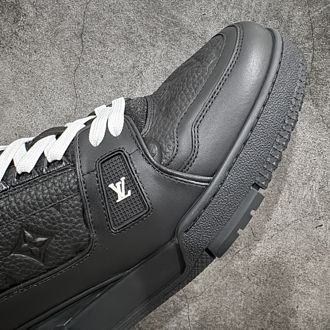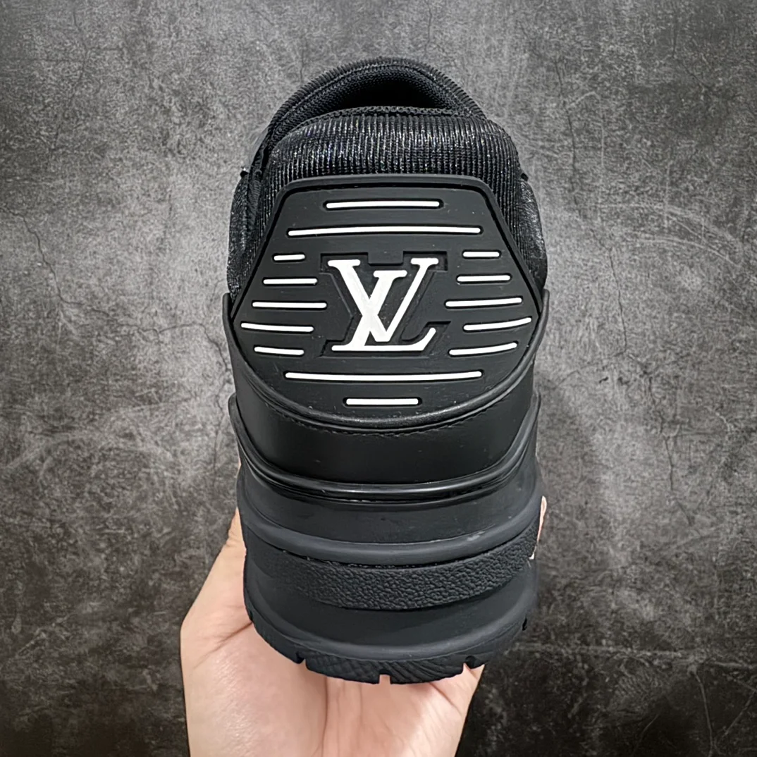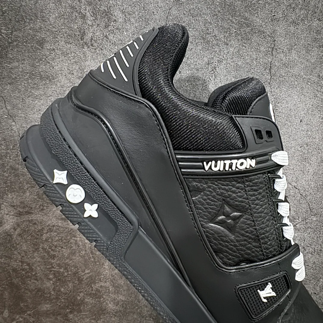 Ikonické tenisky LV Trainer jsou v této sezóně znovu představeny v kombinaci džínoviny Monogram a zrnité teletiny s reliéfem Monogram. Kontrastní barvy a materiály podtrhují propracovanou konstrukci tohoto modelu, který byl inspirován vintage basketbalovými teniskami. Sešití jednoho páru trvá sedm hodin.