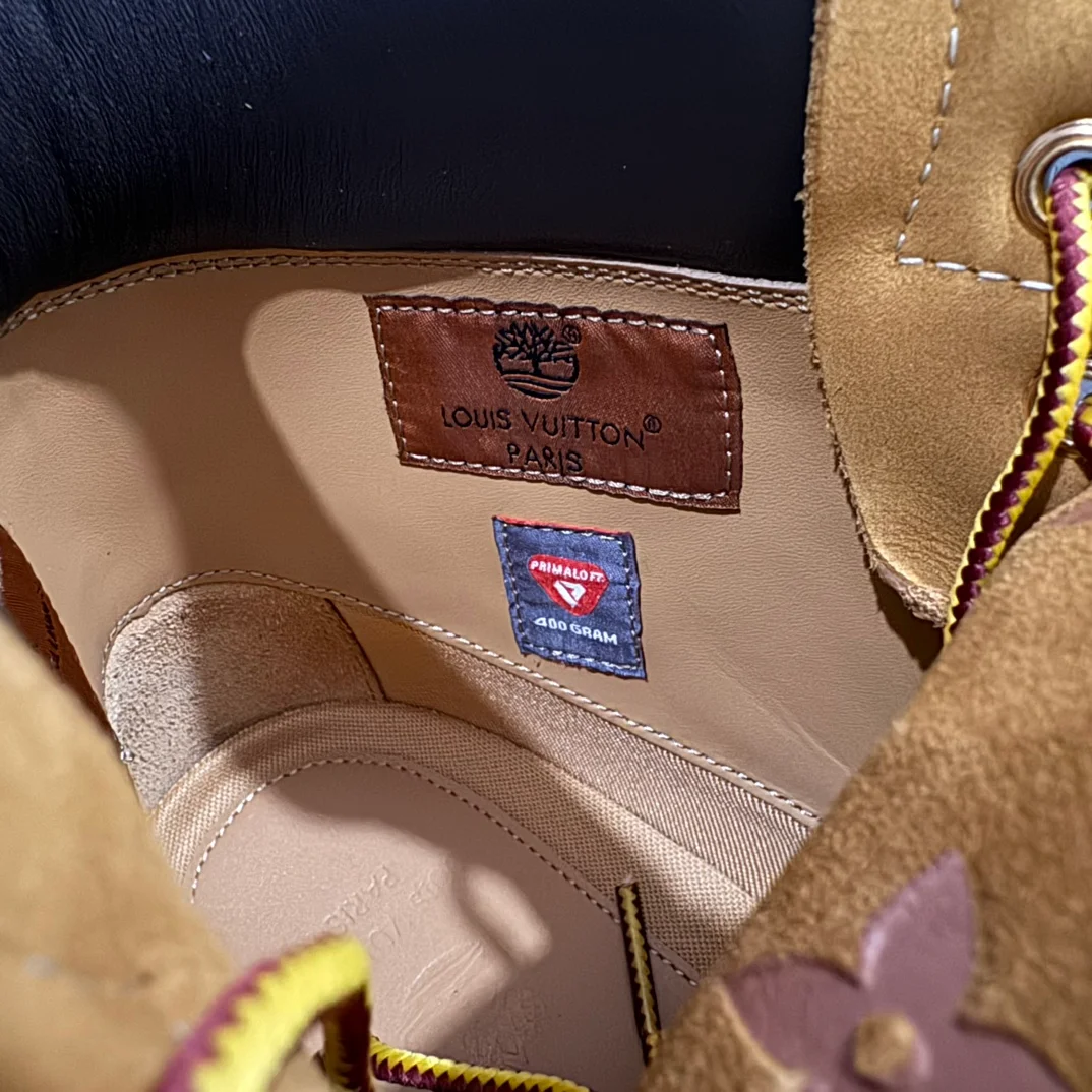 - Podpis značky Louis Vuitton Paris x Timberland na visačce, jazyku a stélce
