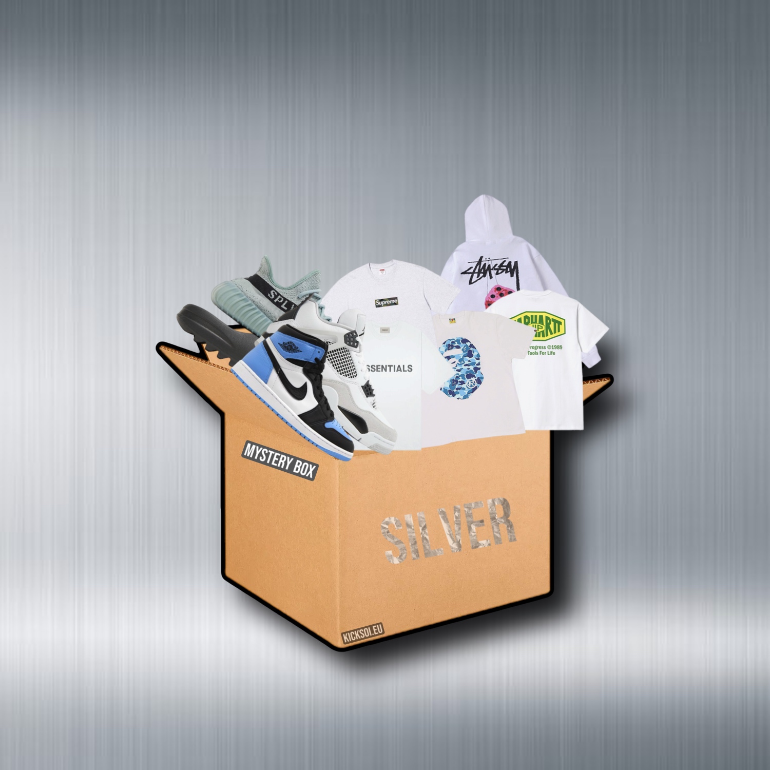 Objevte kouzlo Silver Mystery Box, kde se luxus snoubí s překvapením. Rozbalte pečlivě vybraný výběr špičkových položek, od elegantních doplňků po limitované edice tenisek. Každý Silver Mystery Box v sobě skrývá směs tajemství, elegance a stylu.