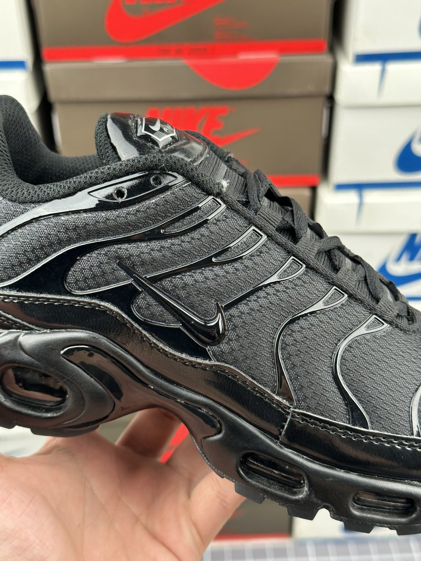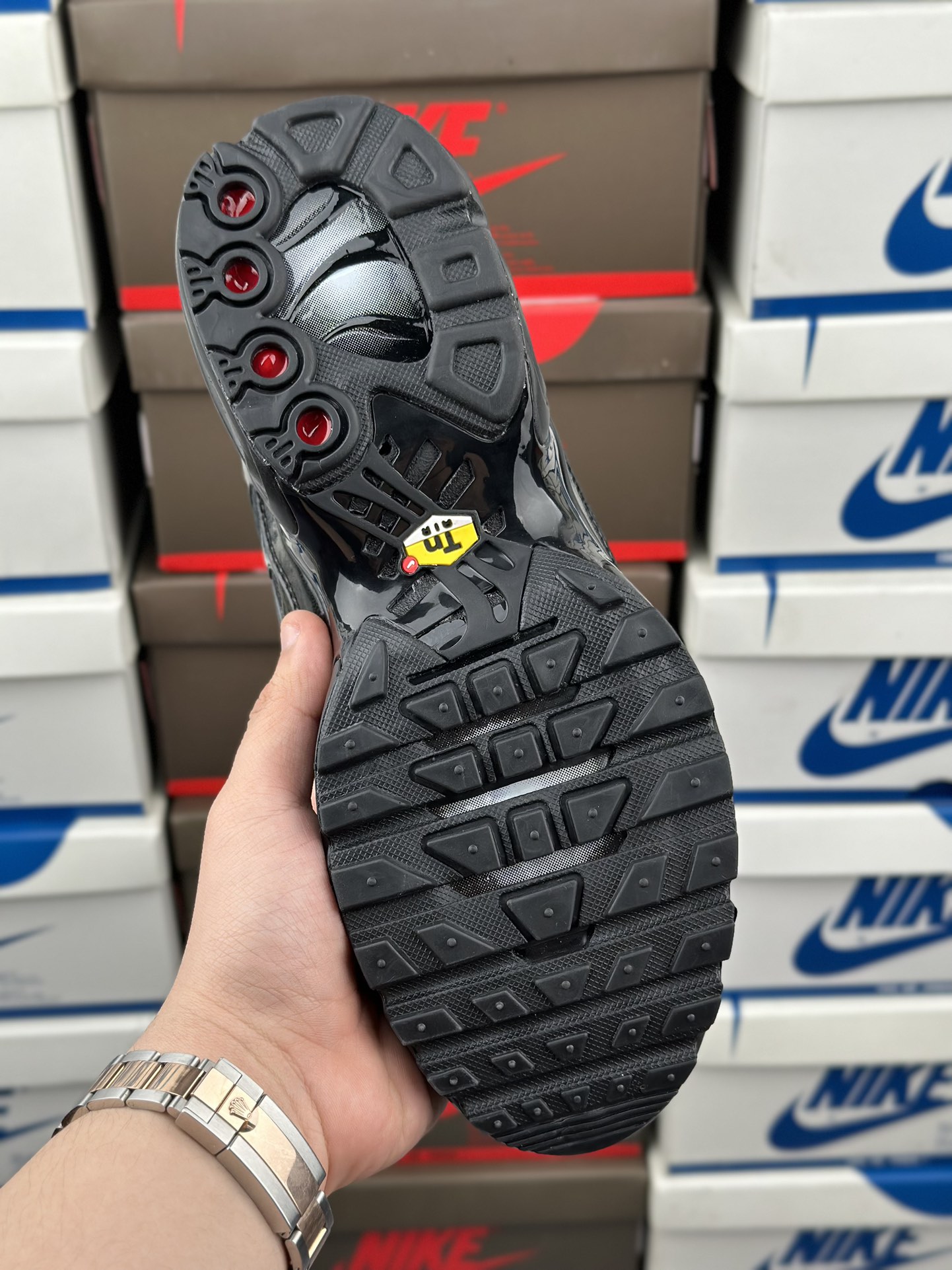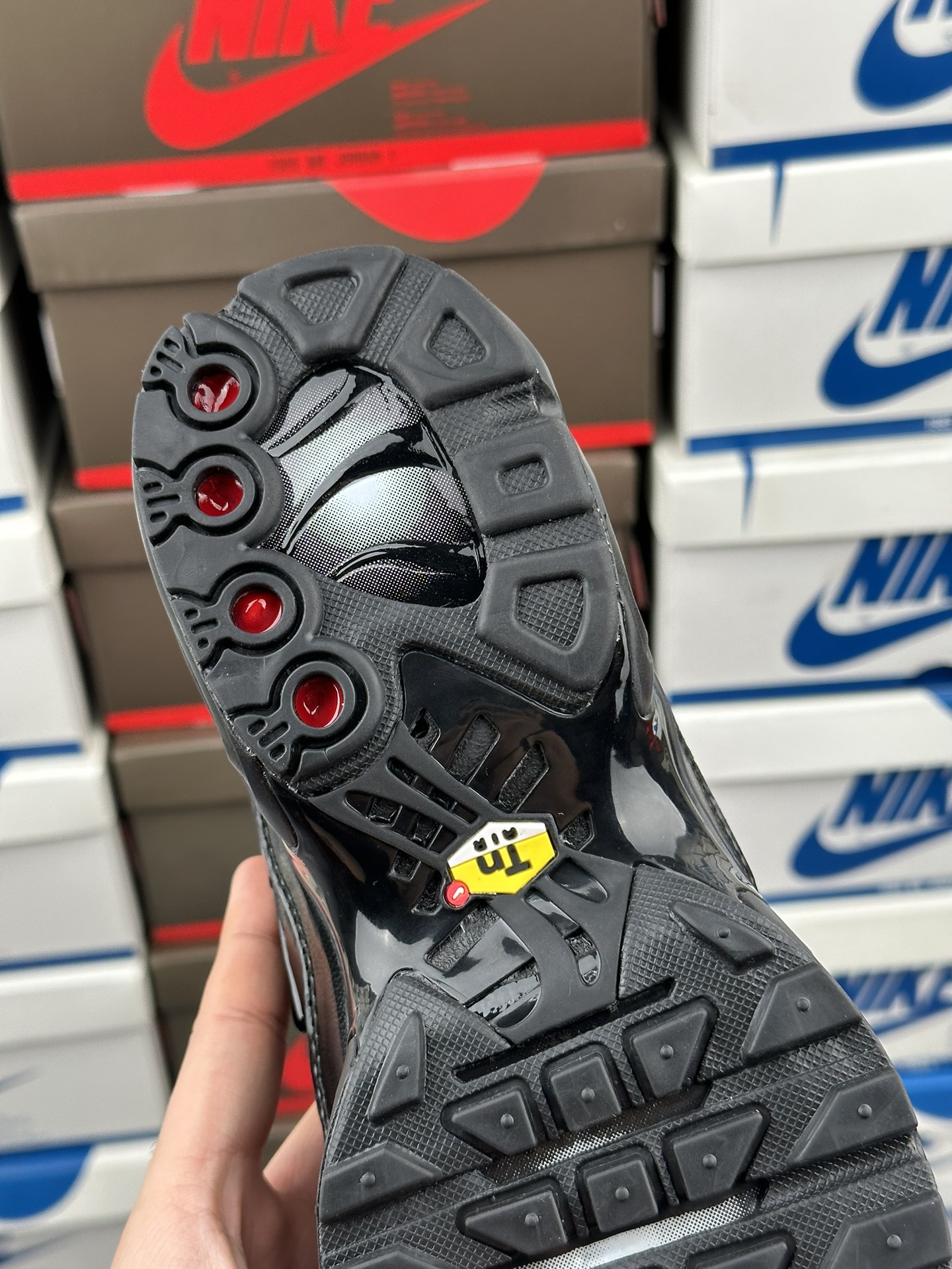 Úkol navrhnout původní Tuned 1 dostal Sean McDowell. Právě se vrátil z dovolené a blednoucí modré a žluté barevné schéma bylo inspirováno západem slunce na Floridě. A „prsty“ po stranách? Mc Dowell je viděl jako palmy rýsující se proti obloze. Technologie Tuned Air se poprvé veřejně objevila v roce 1998 s Nike Air Max Plus. Tento systém odpružení kombinuje Nike Air s vyladěnými mechanickými prvky pro vysoce účinnou ochranu proti nárazu. Pomocí hemisfér je nízkotlaká jednotka Max Air přizpůsobena tak, aby fungovala specificky v patě a poskytovala odpružení, které je vyladěno pro potřeby různých sportovců a aktivit. Je vyrobena z vysoce flexibilního materiálu Pebax. Vyladěné vzduchové polokoule se při stlačení rychle spojí. Rozdíly v jejich tloušťce a umístění znamenají, že hemisféry vedou nohu přirozeným dopadem, aby poskytovaly flexibilní ochranu proti nárazu a kontrolu pohybu. Tuned Air umožňuje měkčí jízdu a hladší přechod.