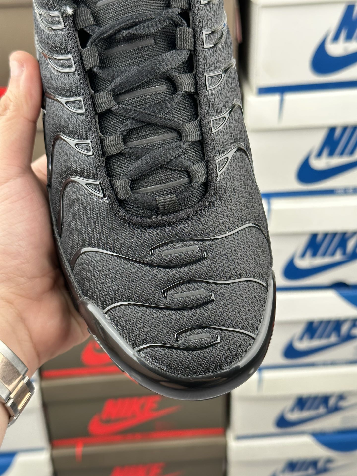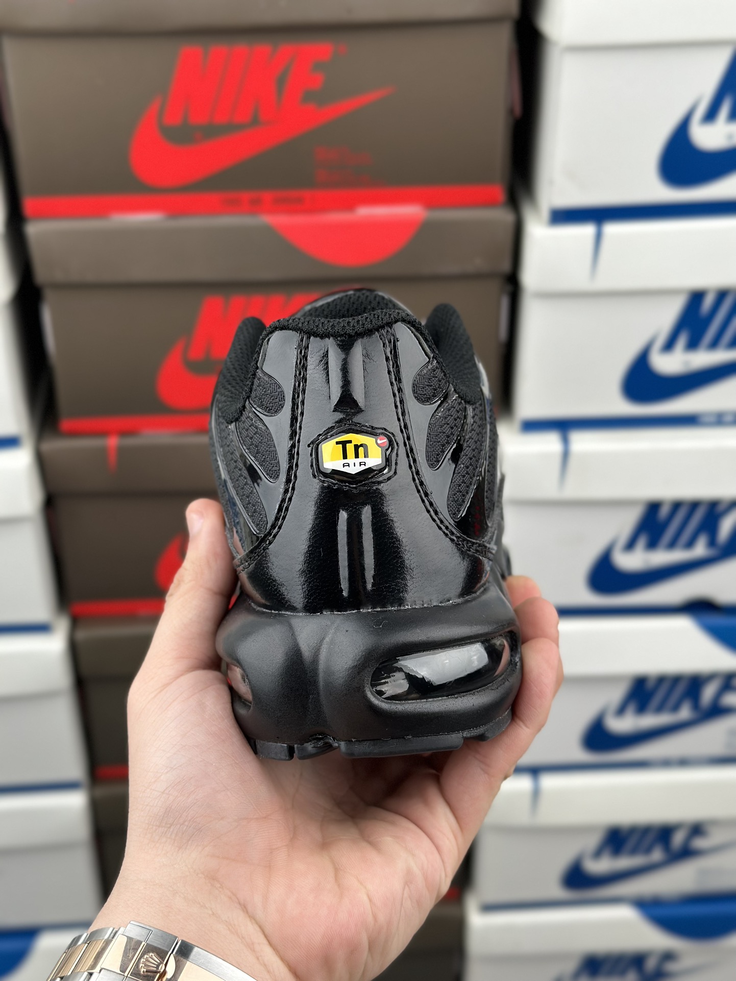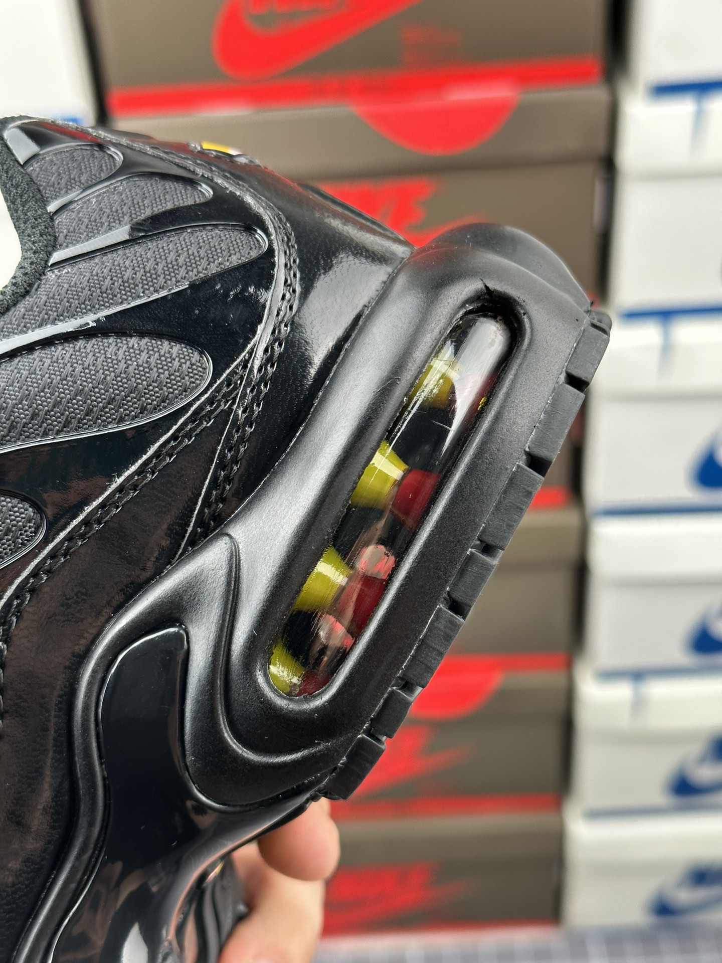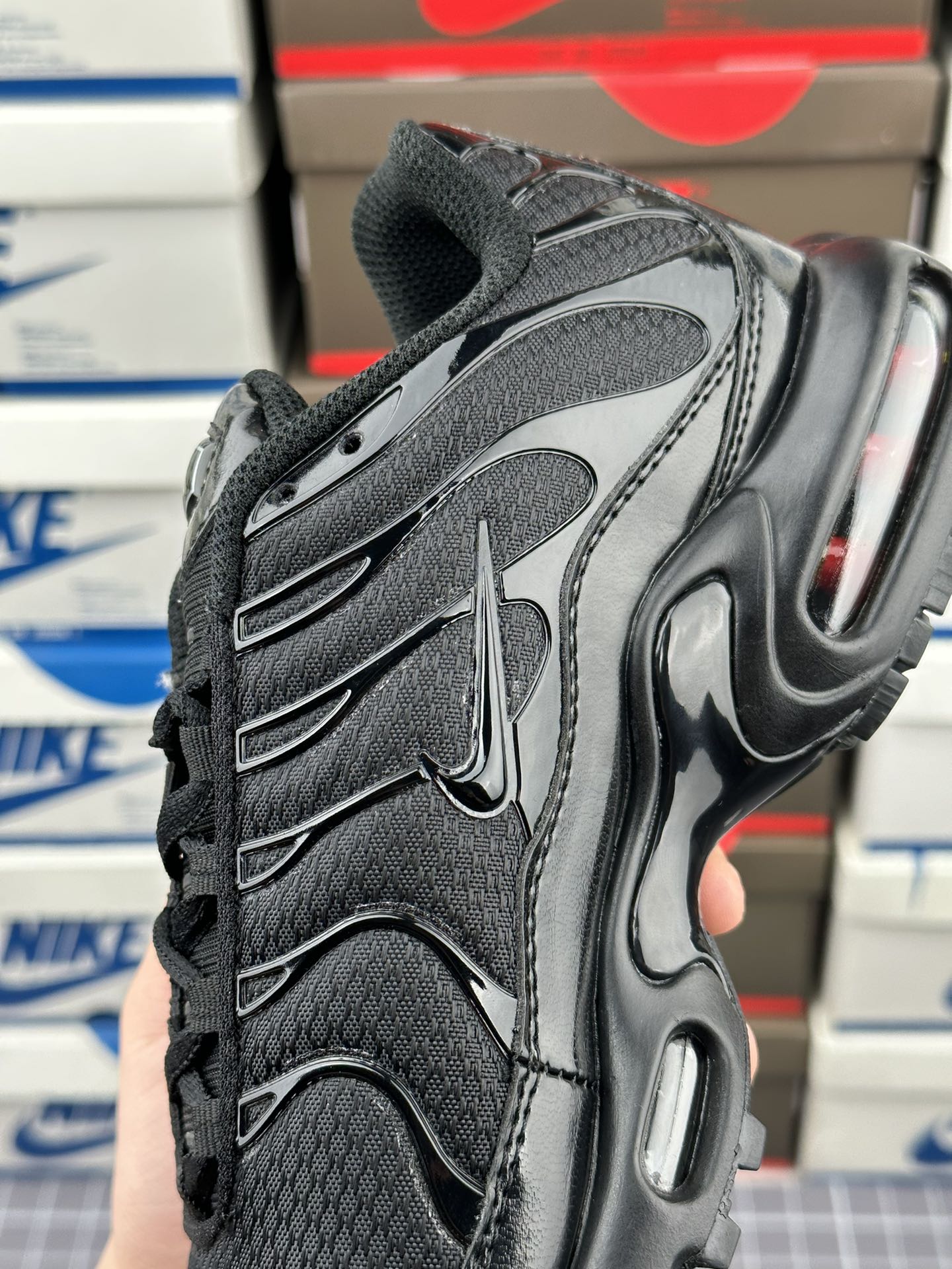 Úkol navrhnout původní Tuned 1 dostal Sean McDowell. Právě se vrátil z dovolené a blednoucí modré a žluté barevné schéma bylo inspirováno západem slunce na Floridě. A „prsty“ po stranách? Mc Dowell je viděl jako palmy rýsující se proti obloze. Technologie Tuned Air se poprvé veřejně objevila v roce 1998 s Nike Air Max Plus. Tento systém odpružení kombinuje Nike Air s vyladěnými mechanickými prvky pro vysoce účinnou ochranu proti nárazu. Pomocí hemisfér je nízkotlaká jednotka Max Air přizpůsobena tak, aby fungovala specificky v patě a poskytovala odpružení, které je vyladěno pro potřeby různých sportovců a aktivit. Je vyrobena z vysoce flexibilního materiálu Pebax. Vyladěné vzduchové polokoule se při stlačení rychle spojí. Rozdíly v jejich tloušťce a umístění znamenají, že hemisféry vedou nohu přirozeným dopadem, aby poskytovaly flexibilní ochranu proti nárazu a kontrolu pohybu. Tuned Air umožňuje měkčí jízdu a hladší přechod.
