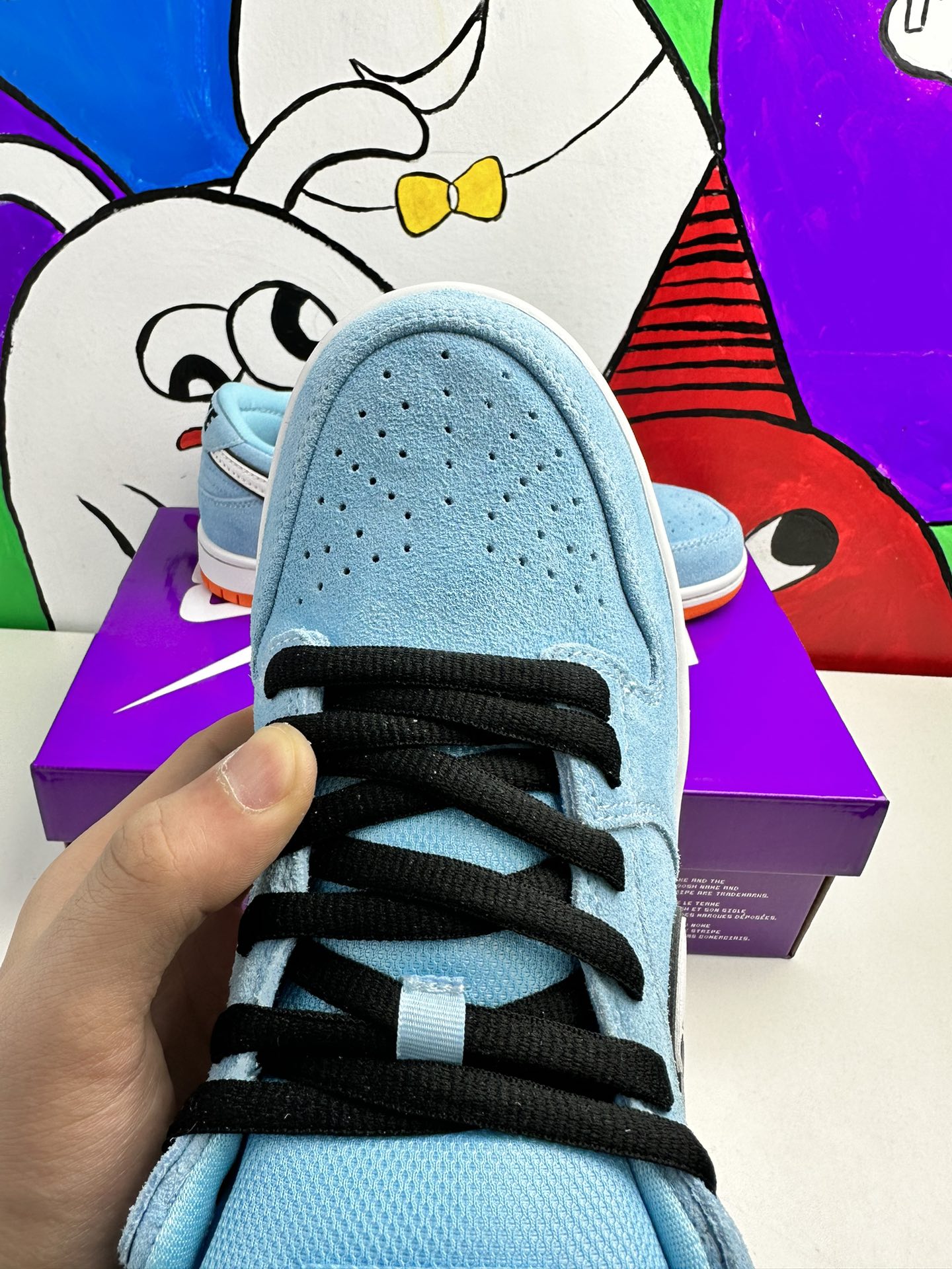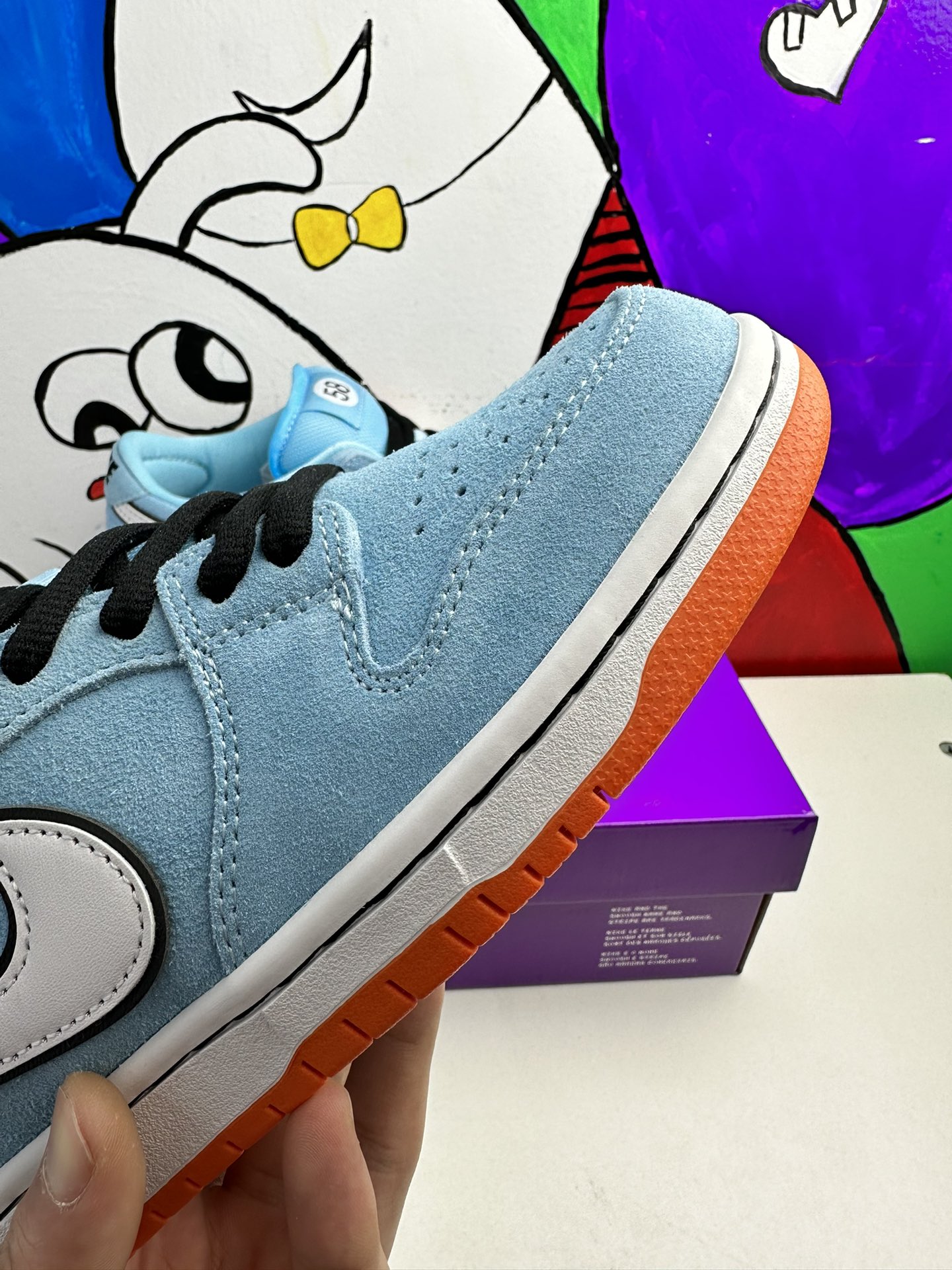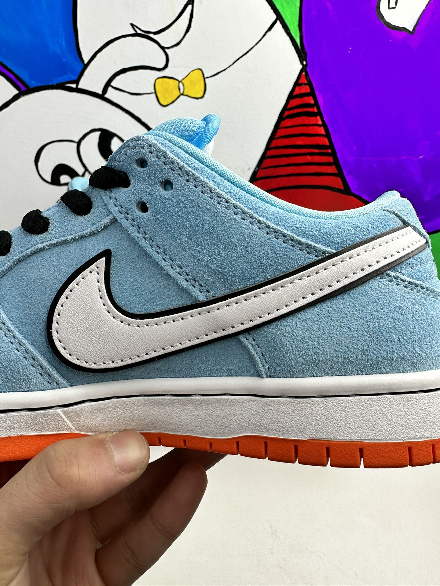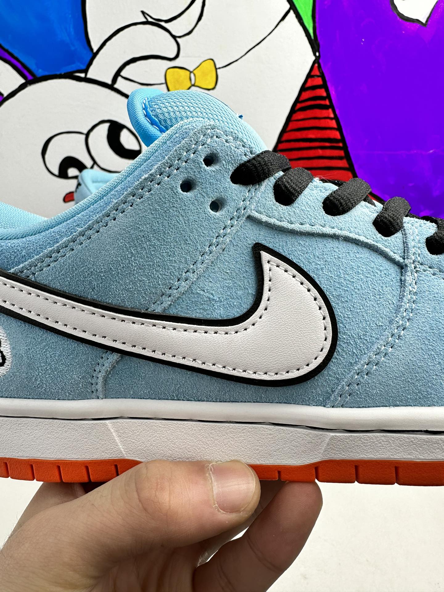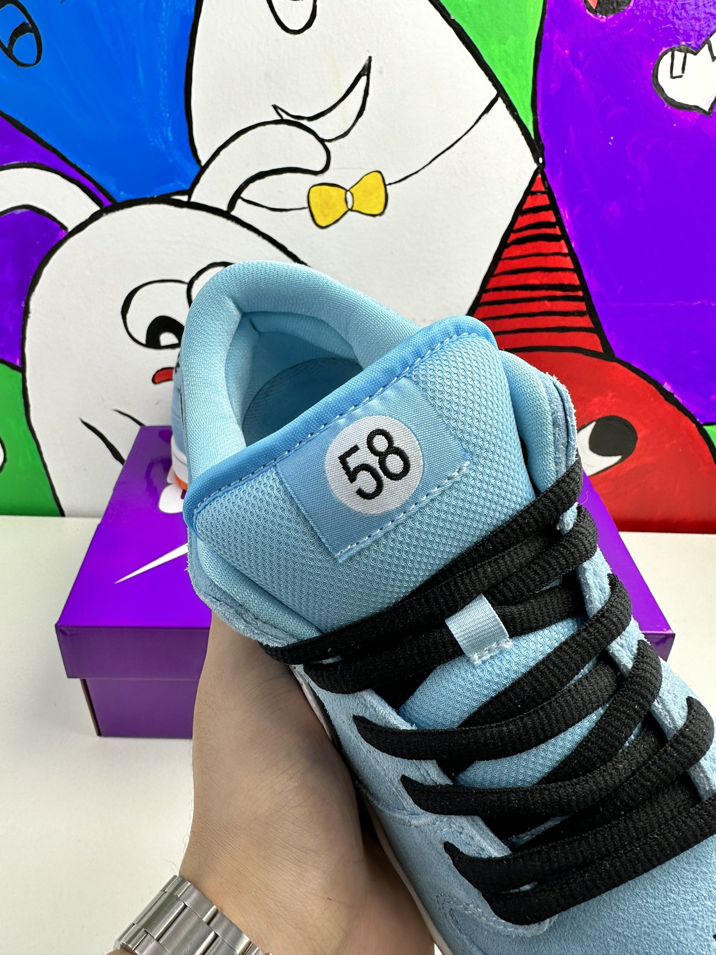 Nike Dunk Low Pro SB ‚Gulf‘ navazuje na Blazer Mid ‚Club 58‘ z roku 2018, přičemž oba jsou navrženy ve spolupráci s konsorciem čtyř předních skate shopů se sídlem v západní Evropě. Světle modrý semiš je použit v celém svršku, zvýrazněn bílým koženým Swoosh a kruhovou grafikou 58 na boční patě. Číslice se opakují na tkaném štítku připevněném k vycpanému síťovému jazyku. Jasně oranžová gumová podrážka pod nohama dodává kontrastní barvu.