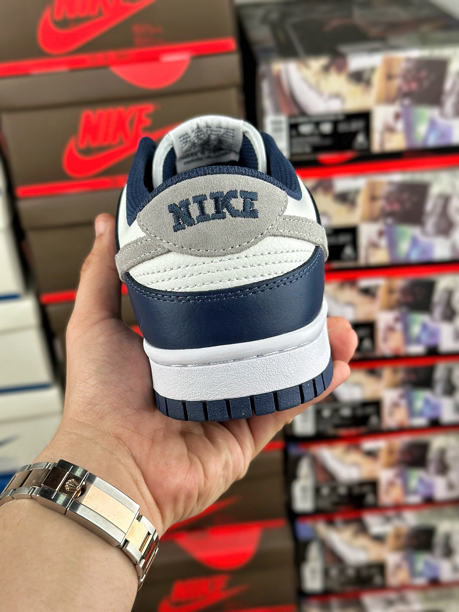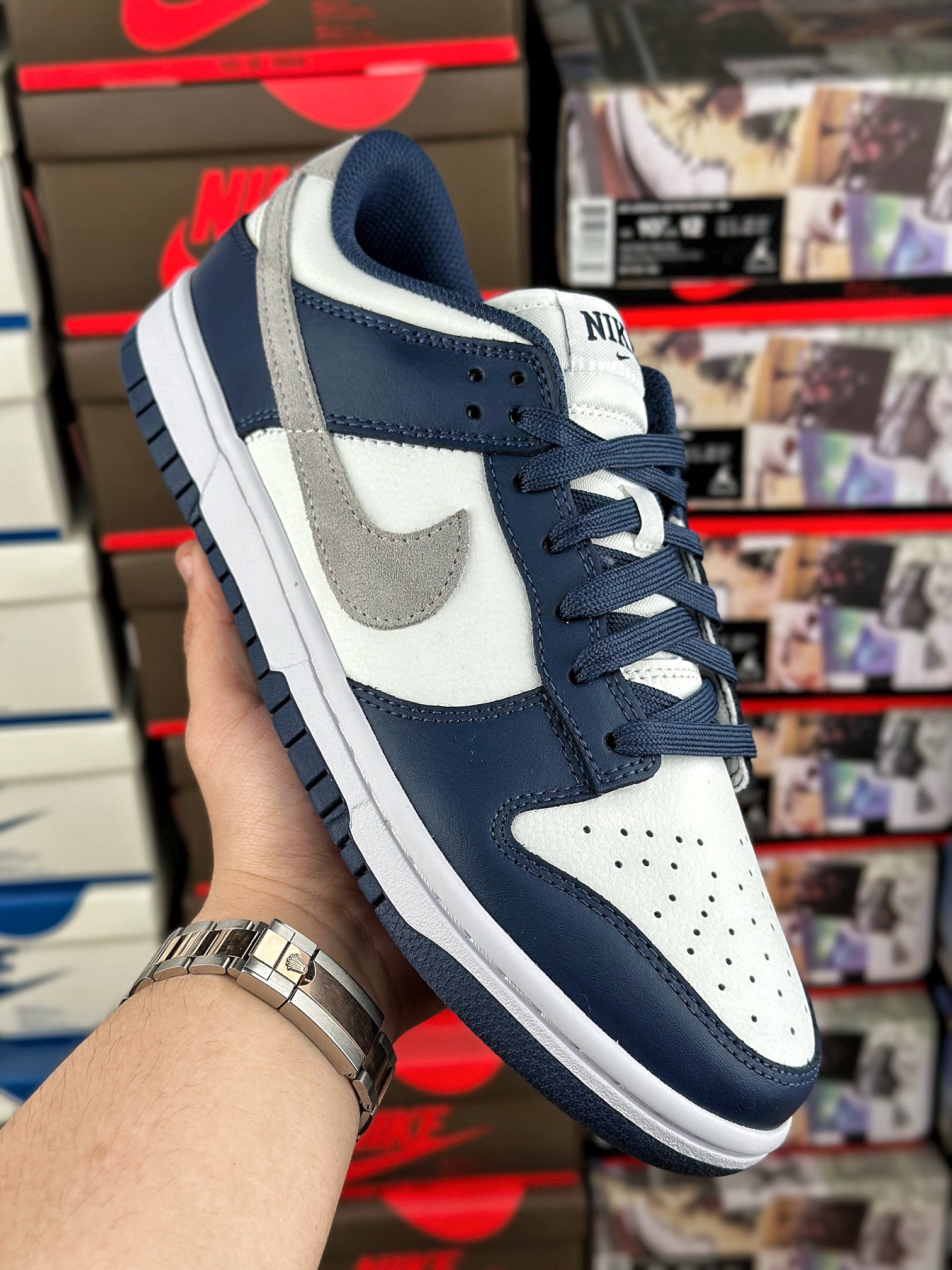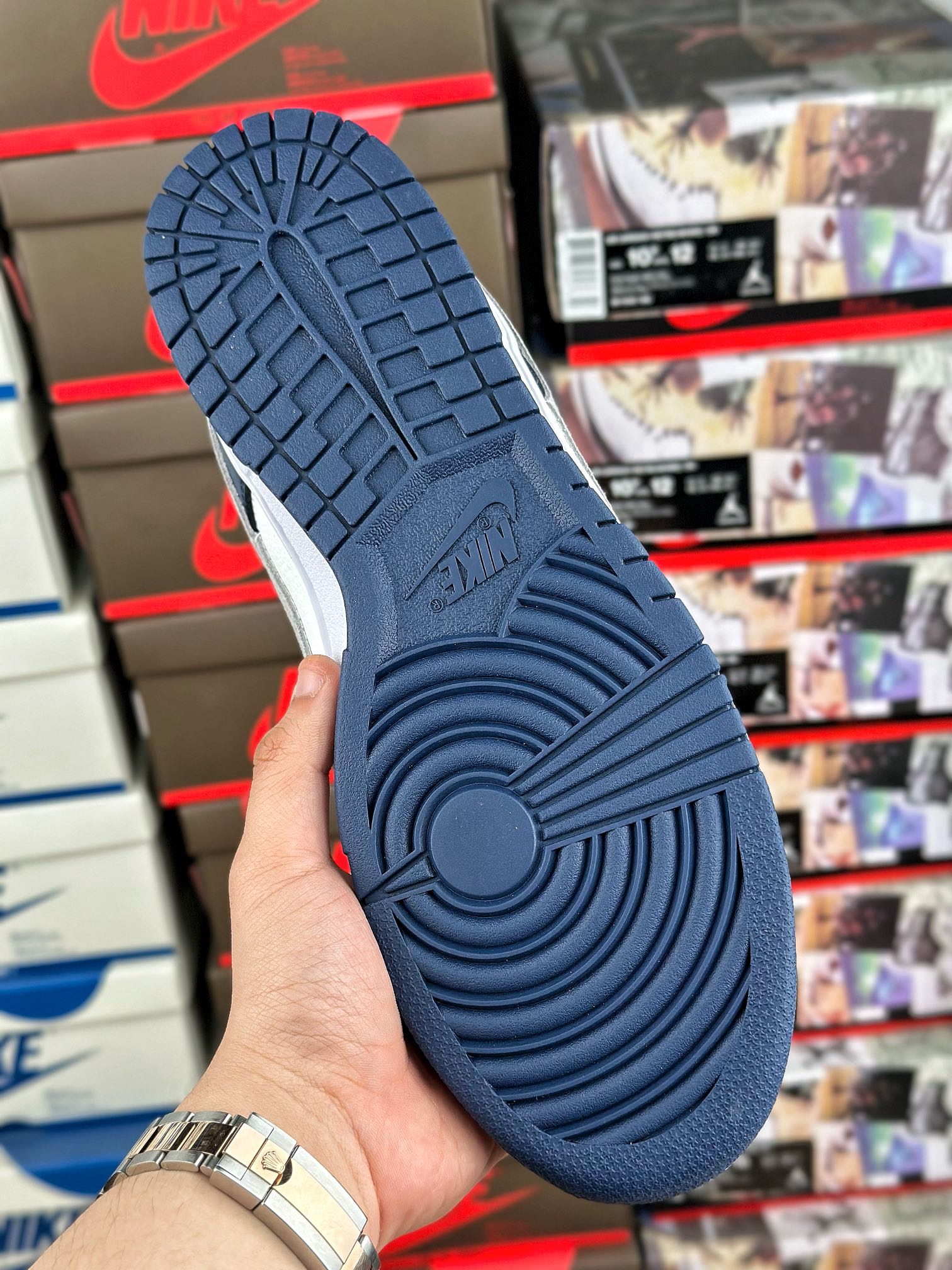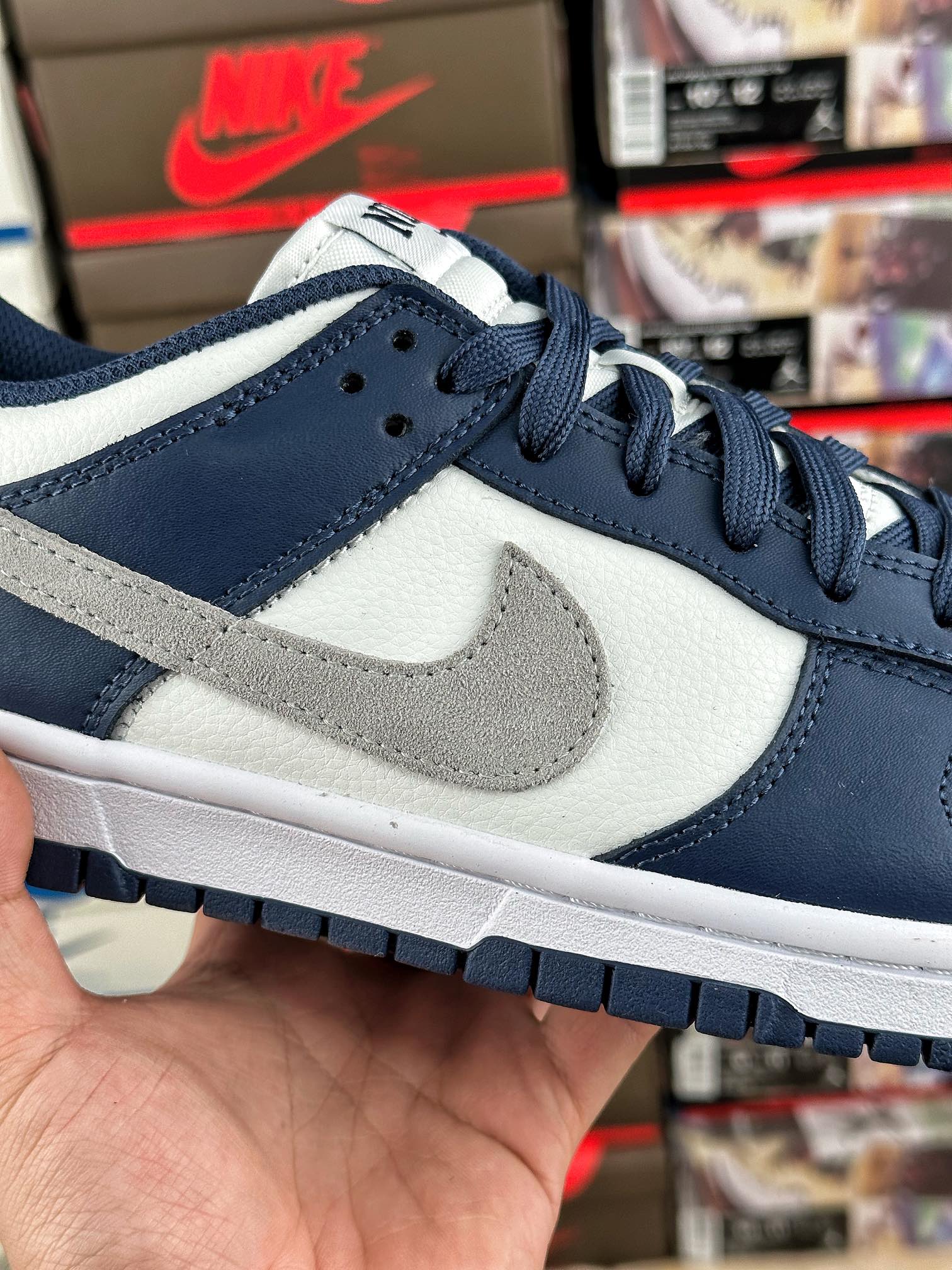 Tenisky Nike Dunk Low Summit White Midnight Navy mají na svém svršku v kombinaci modré, šedé a bílé barvy. Model Nike Dunk je v současné době jedním z nejoblíbenějších typů tenisek mezi sběrateli a vydává se v limitovaném množství.