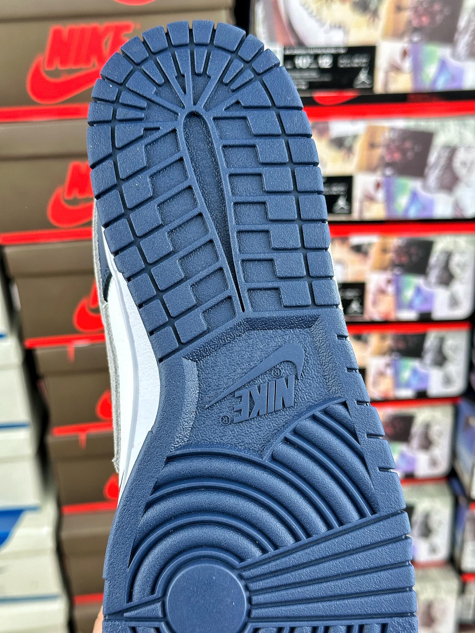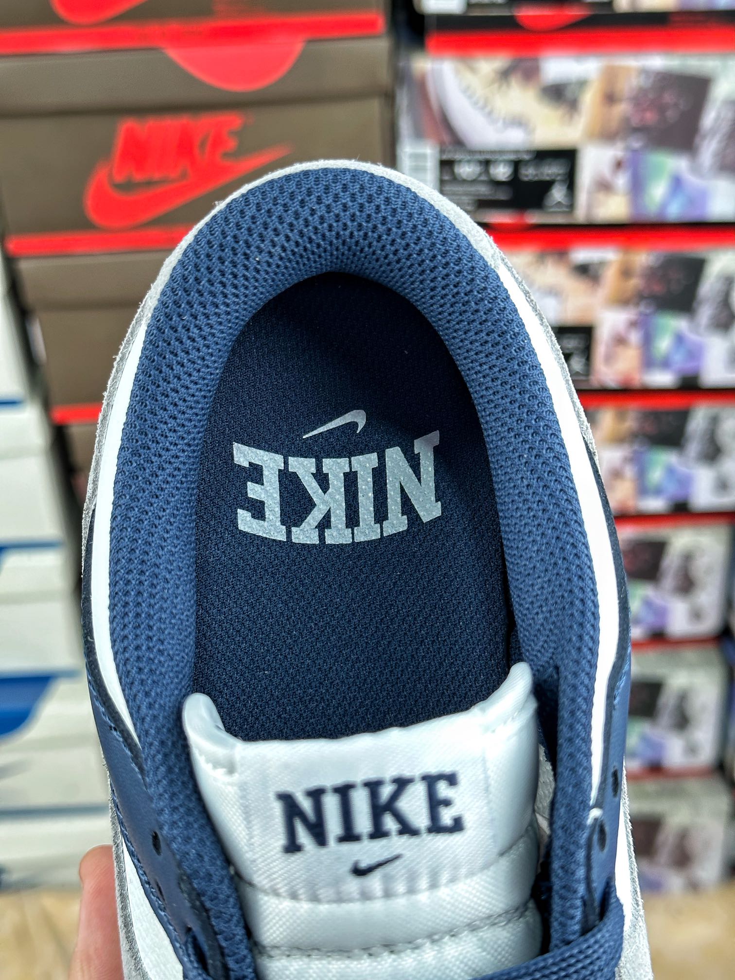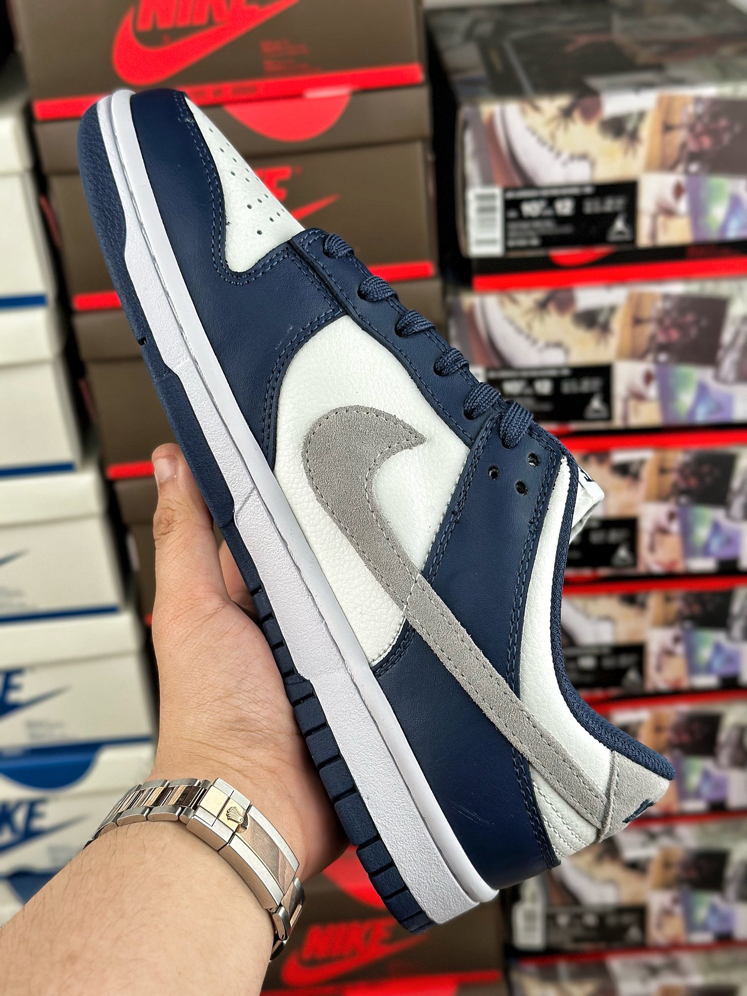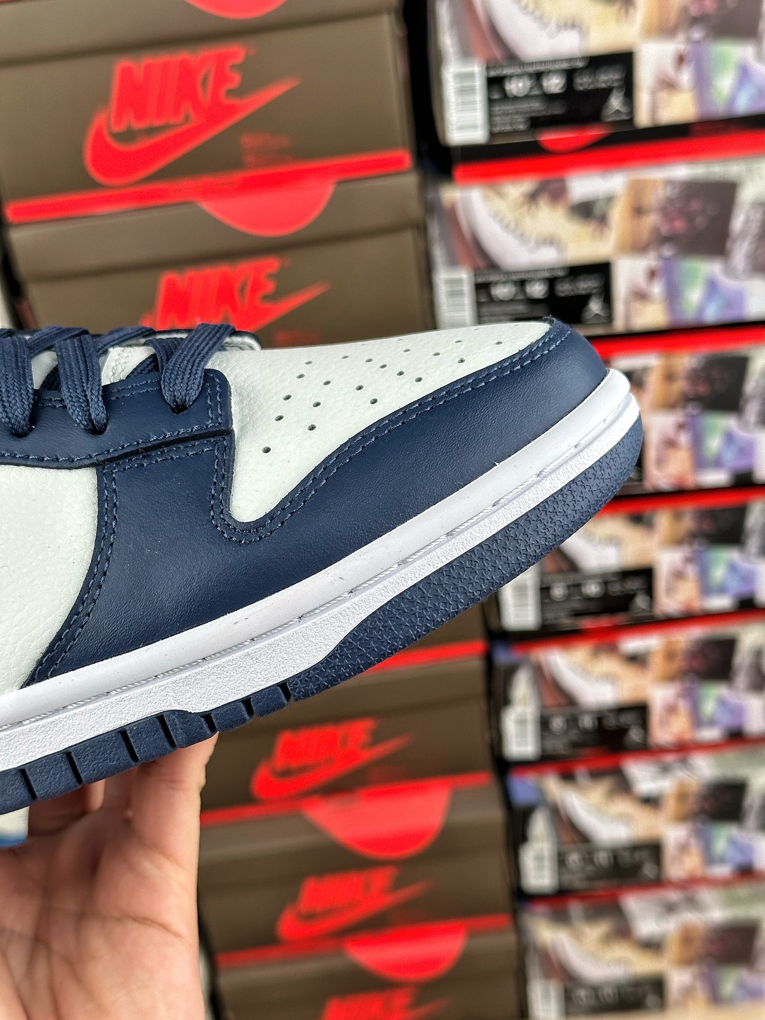 Tenisky Nike Dunk Low Summit White Midnight Navy mají na svém svršku v kombinaci modré, šedé a bílé barvy. Model Nike Dunk je v současné době jedním z nejoblíbenějších typů tenisek mezi sběrateli a vydává se v limitovaném množství.