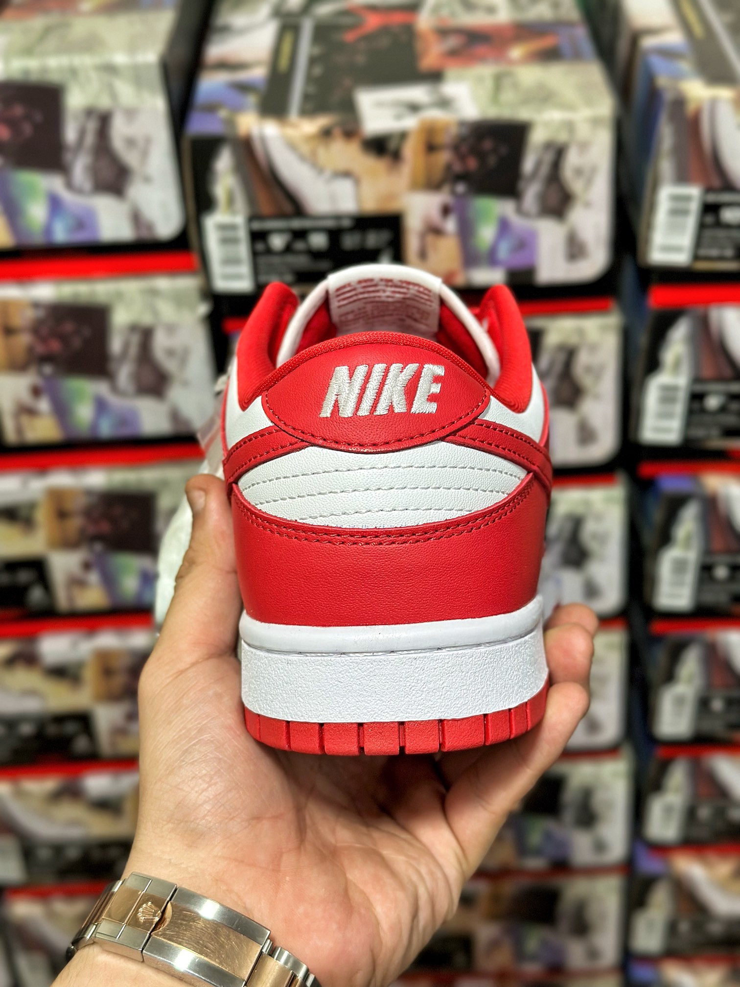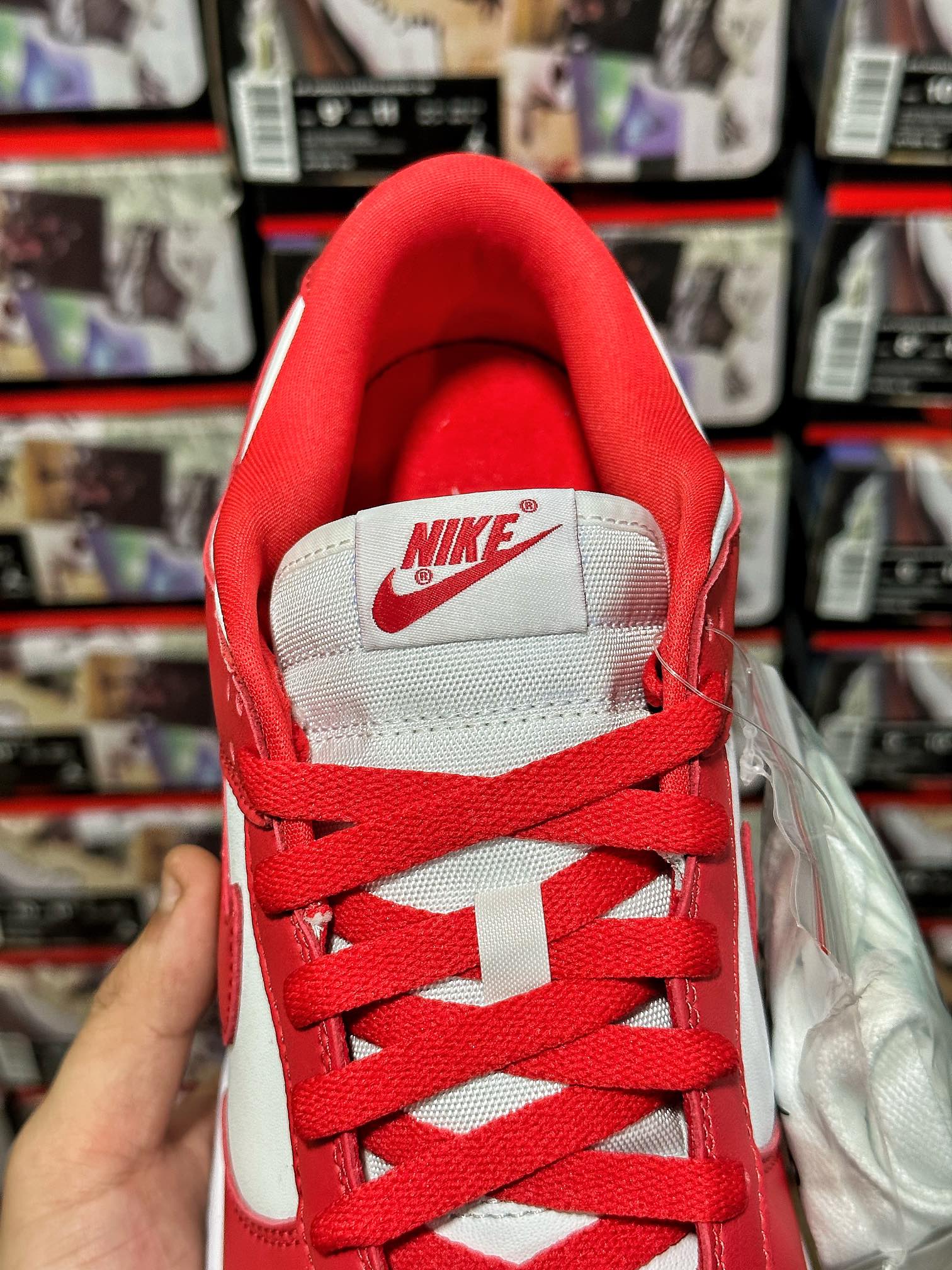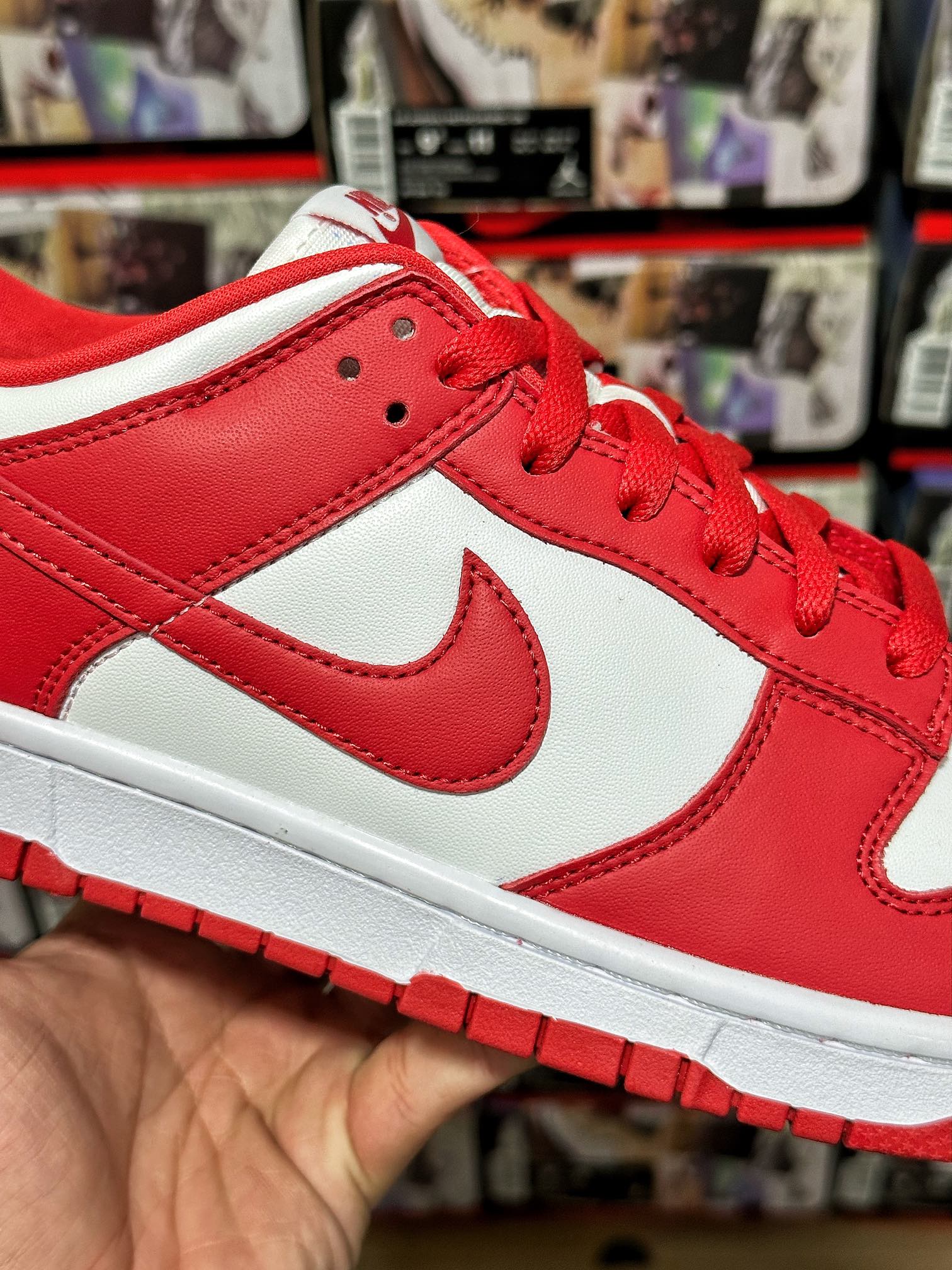 Nike Dunk Low SP St. John’s (2020) dostupné v ikonickém zbarvení White/University Red oslavuje 35. výročí Nike Dunk z programu Nike College Color 1985. Tato speciální edice tenisek poskytuje všestranné pohodlí a styl s bílým koženým svrškem doplněným červenými koženými překryvy. Klasická značka Nike na jazyku nabízí další způsob, jak ukázat loajalitu svého týmu. Bílá mezipodešev a červená podešev doplňují tento stylový design. Tato limitovaná edice tenisek vydaná v červnu 2020 je perfektním způsobem, jak ukázat hrdost a styl vašeho týmu.