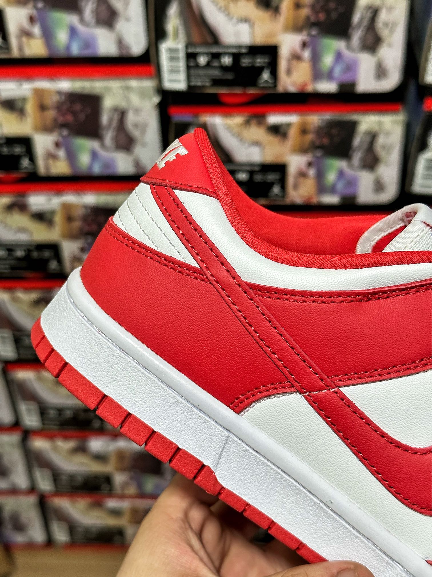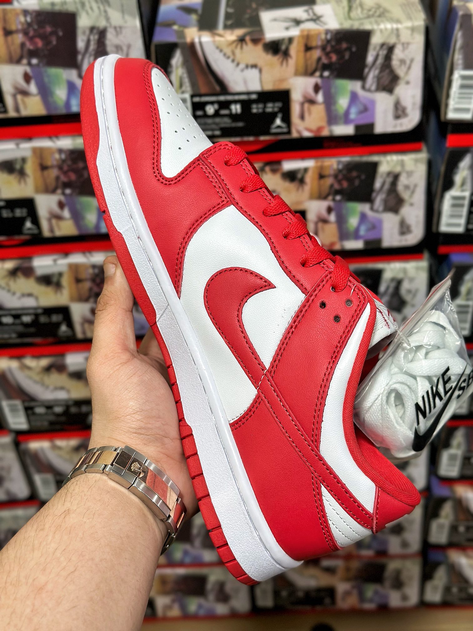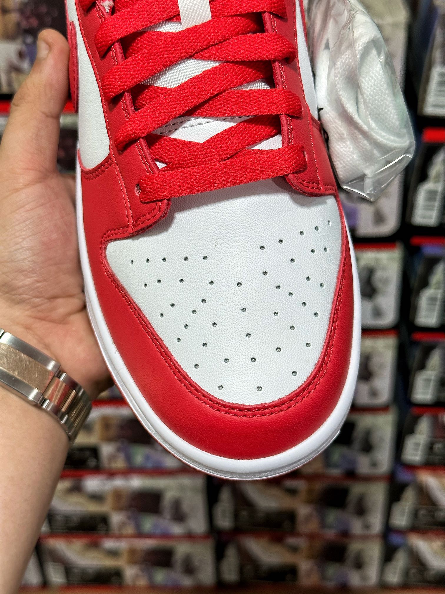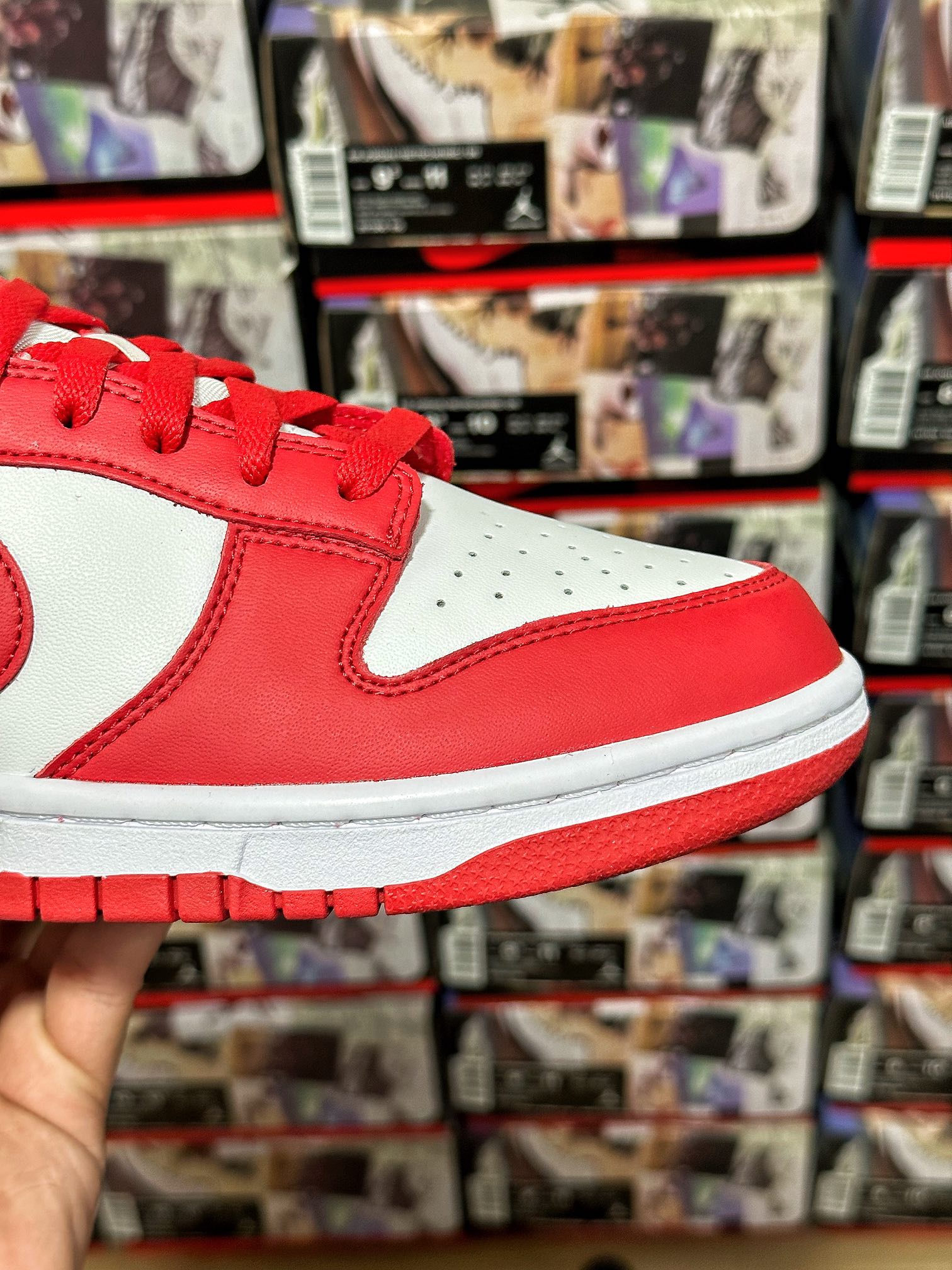 Nike Dunk Low SP St. John’s (2020) dostupné v ikonickém zbarvení White/University Red oslavuje 35. výročí Nike Dunk z programu Nike College Color 1985. Tato speciální edice tenisek poskytuje všestranné pohodlí a styl s bílým koženým svrškem doplněným červenými koženými překryvy. Klasická značka Nike na jazyku nabízí další způsob, jak ukázat loajalitu svého týmu. Bílá mezipodešev a červená podešev doplňují tento stylový design. Tato limitovaná edice tenisek vydaná v červnu 2020 je perfektním způsobem, jak ukázat hrdost a styl vašeho týmu.