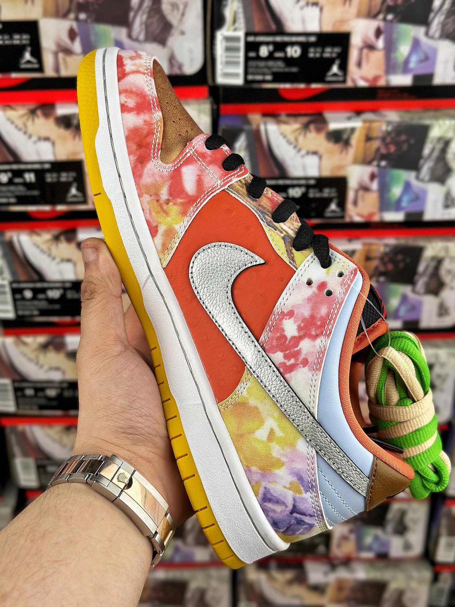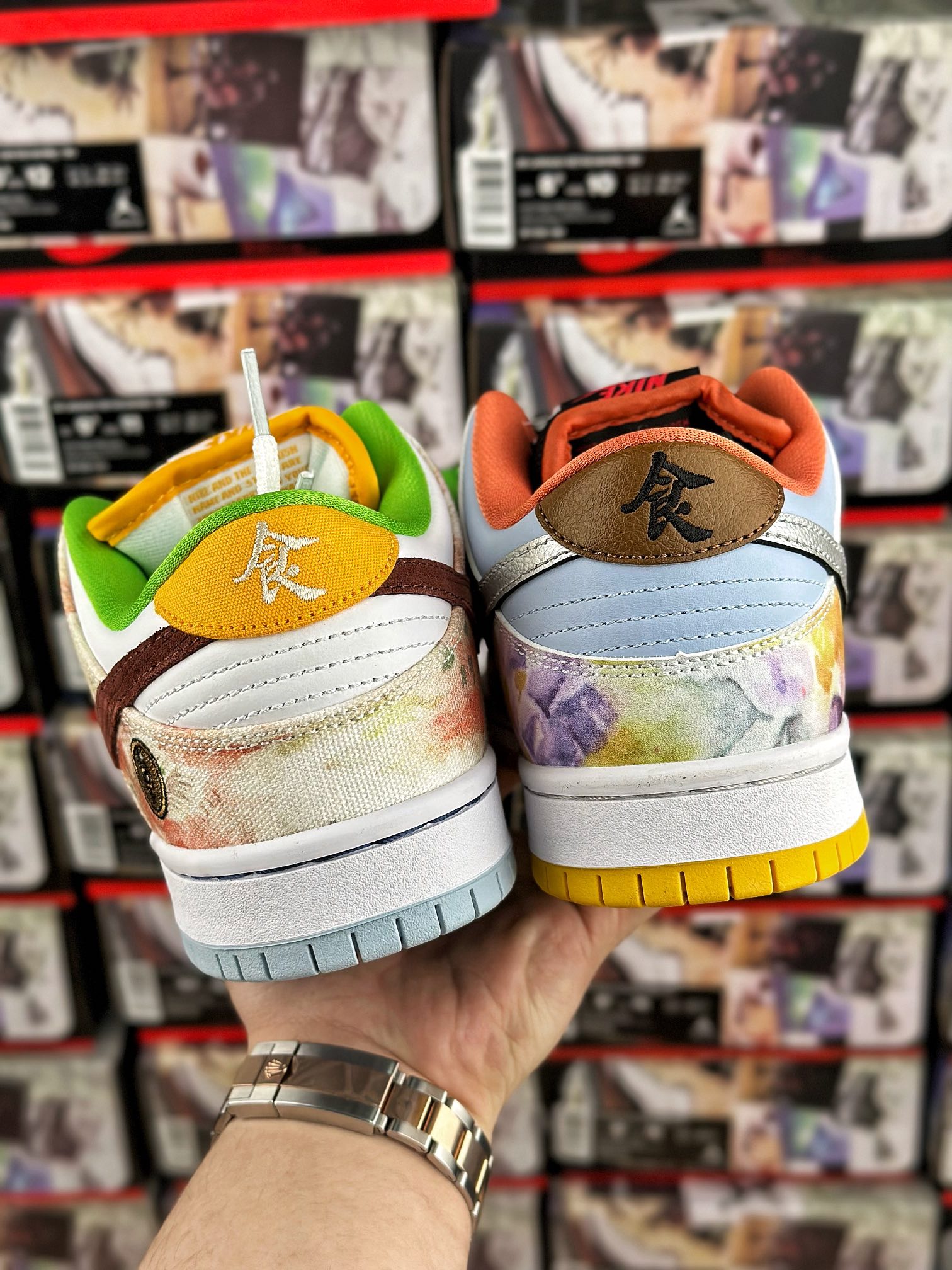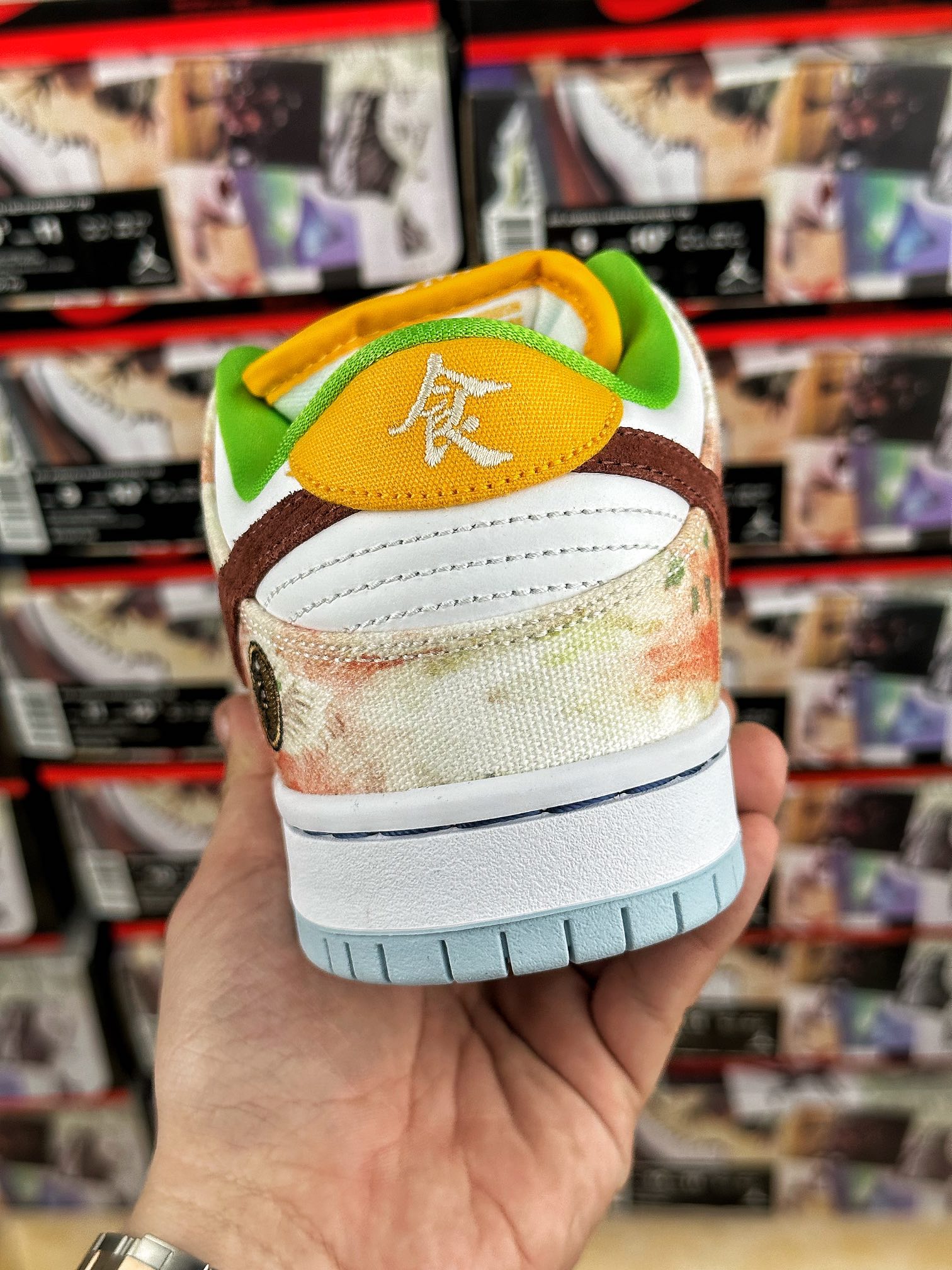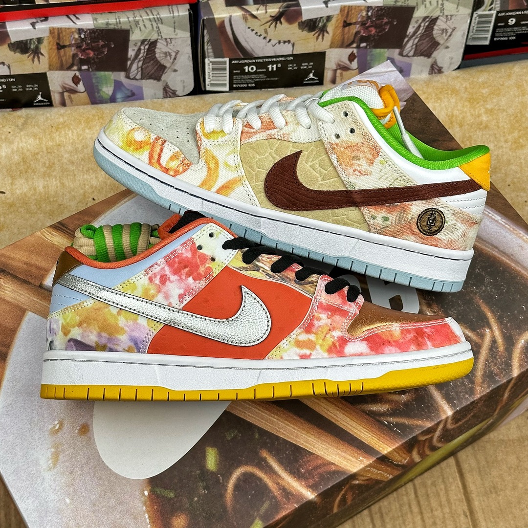 Jason Deng x Nike Dunk Low Pro SB „Street Hawker“, navržený umělcem z Guangzhou, vzdává hold čínským pouličním prodejcům jídla a čínské kultuře jídla obecně. Nízké sportovní nesourodé svršky pokryté jedinečnými materiály, barvami a Dengovou akvarelovou grafikou, jednotlivé detaily představují šest regionálních jídel ze šesti čínských měst. K nim se připojují další kousky inspirované kuchyní, včetně vlnovky s dřevěným zrnem, která přikyvuje hůlkám, modře zabarvené vložky představující porcelánové misky a měděné krabičky na špičku, která slouží k vaření chilli oleje. Na každé patce je vyšívanou čínskou kaligrafií uvedeno „jídlo“.