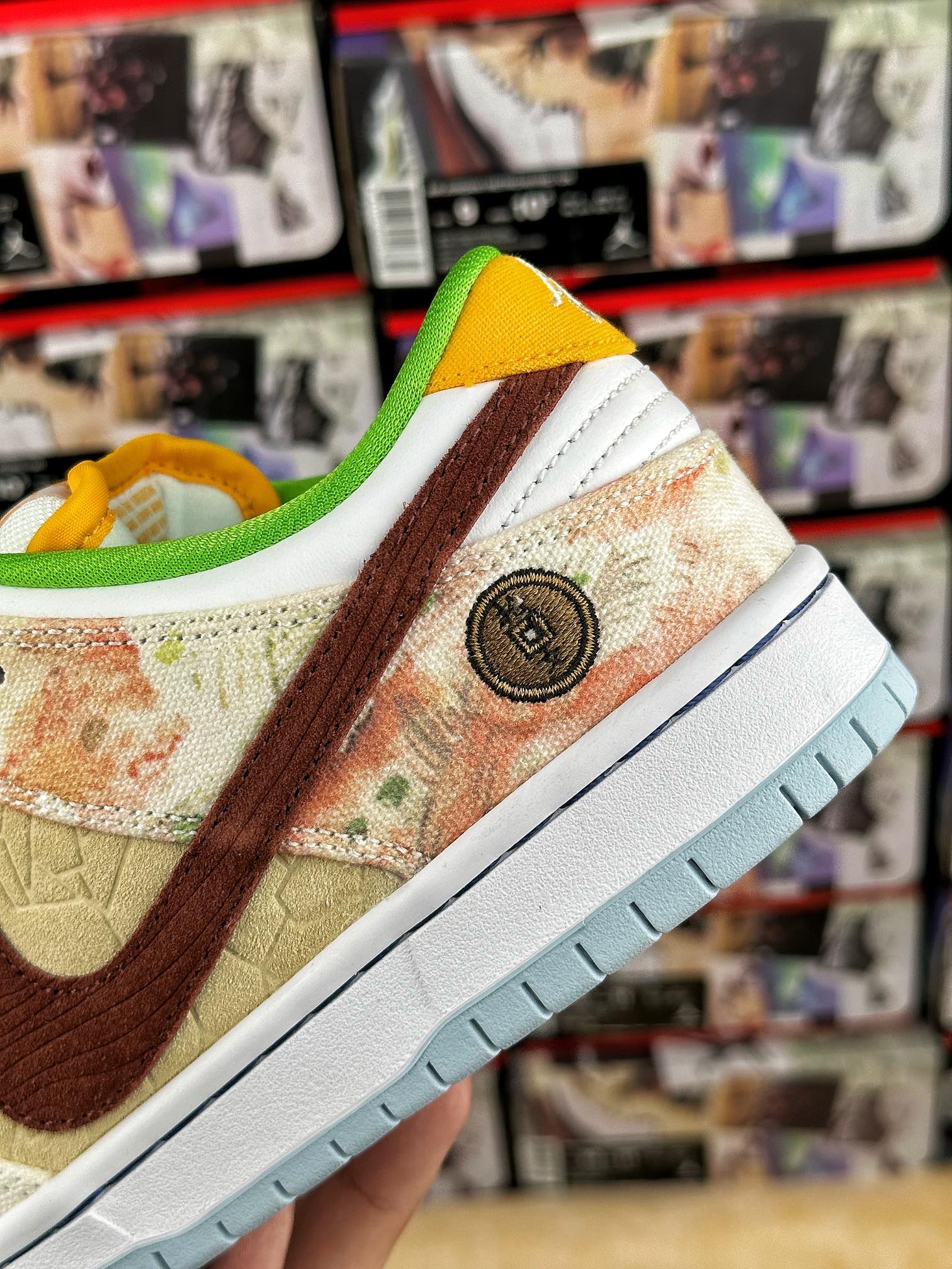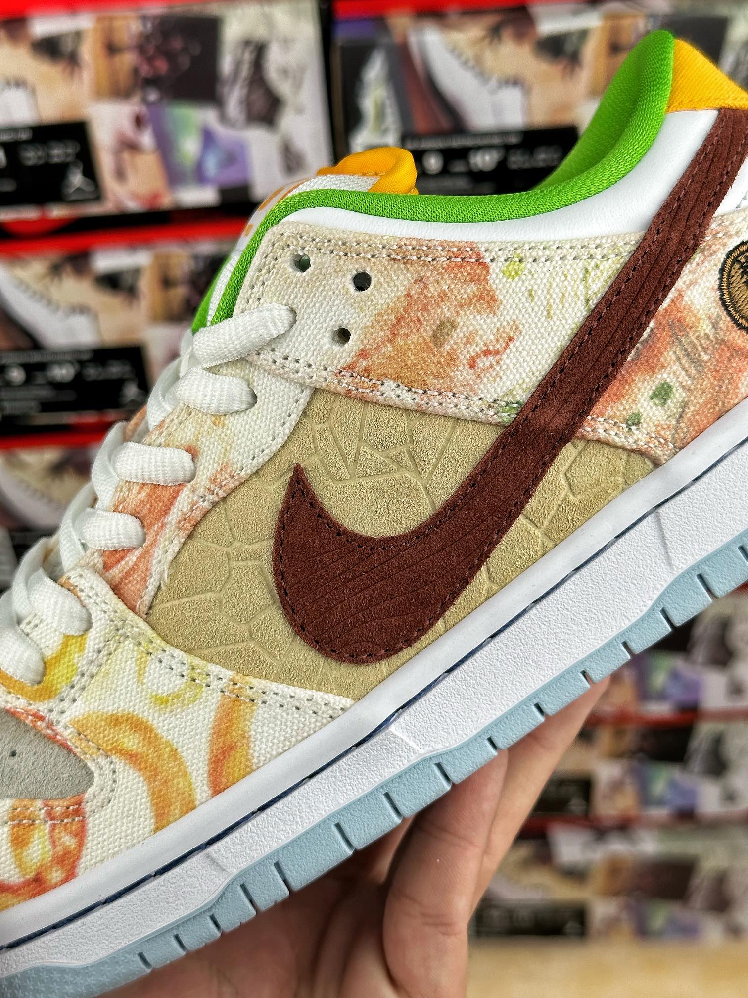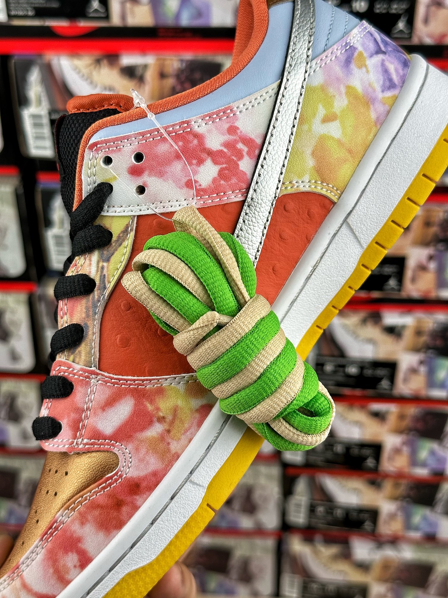 Jason Deng x Nike Dunk Low Pro SB „Street Hawker“, navržený umělcem z Guangzhou, vzdává hold čínským pouličním prodejcům jídla a čínské kultuře jídla obecně. Nízké sportovní nesourodé svršky pokryté jedinečnými materiály, barvami a Dengovou akvarelovou grafikou, jednotlivé detaily představují šest regionálních jídel ze šesti čínských měst. K nim se připojují další kousky inspirované kuchyní, včetně vlnovky s dřevěným zrnem, která přikyvuje hůlkám, modře zabarvené vložky představující porcelánové misky a měděné krabičky na špičku, která slouží k vaření chilli oleje. Na každé patce je vyšívanou čínskou kaligrafií uvedeno „jídlo“.