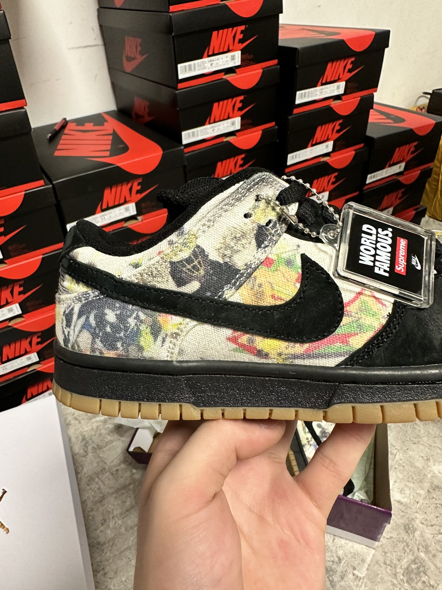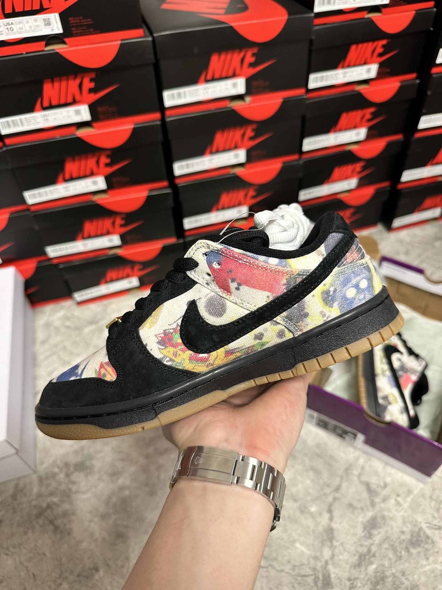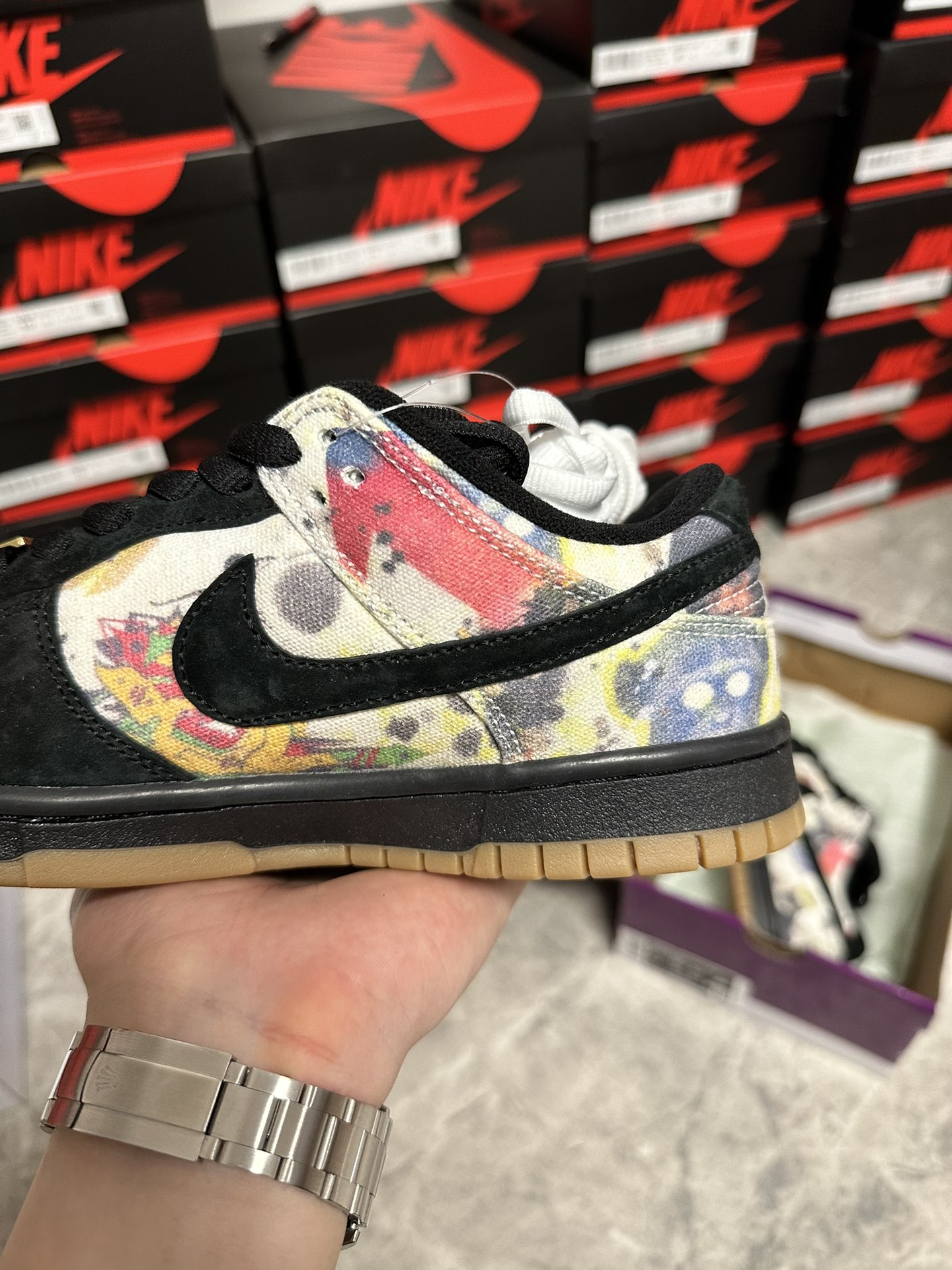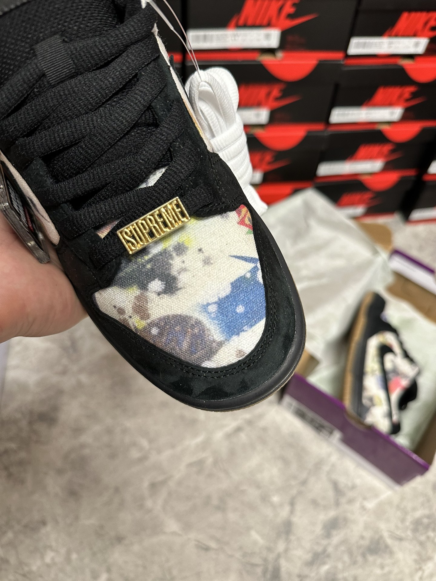 Nike SB Dunk Low Supreme Rammellzee vypadl 31. srpna 2023 a rychle se vyprodal na místech Supreme po celém světě. Tato limitovaná edice tenisek zahrnuje umění pozdního Rammellzee, které dokonale zapouzdřuje jeho ikonické motivy ve stylu graffiti, které byly k vidění v předchozích kolaboracích Supreme. Tato teniska se může pochlubit černým a vícebarevným svrškem mezi davem. Zamkněte se, když se dnes spojíte s jedním z nejžádanějších stylů roku.