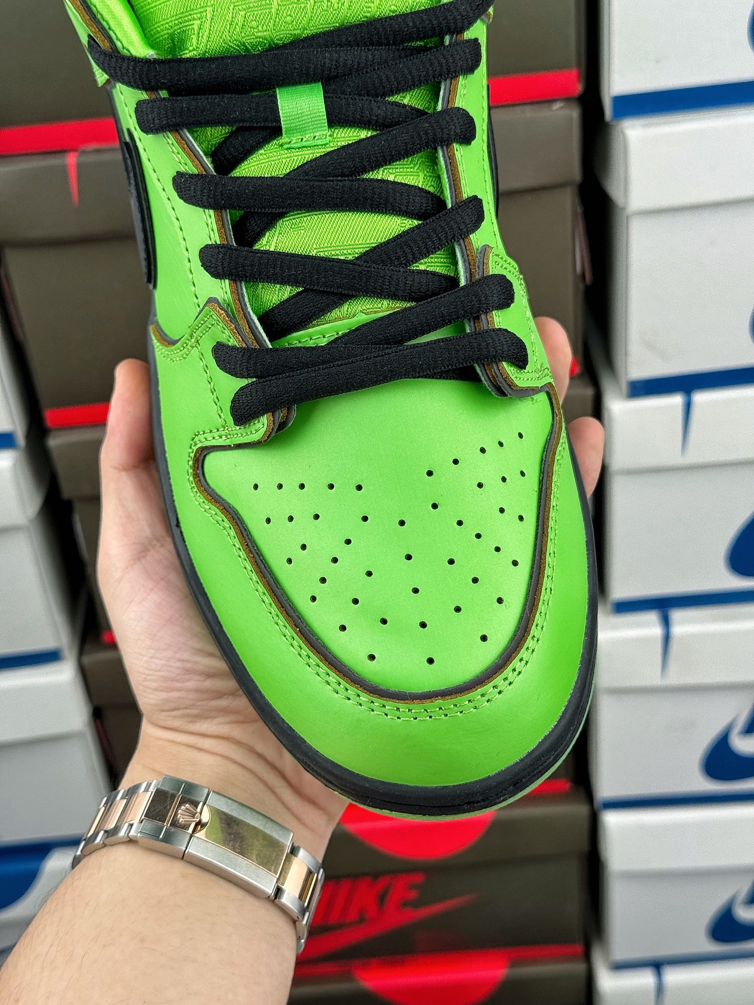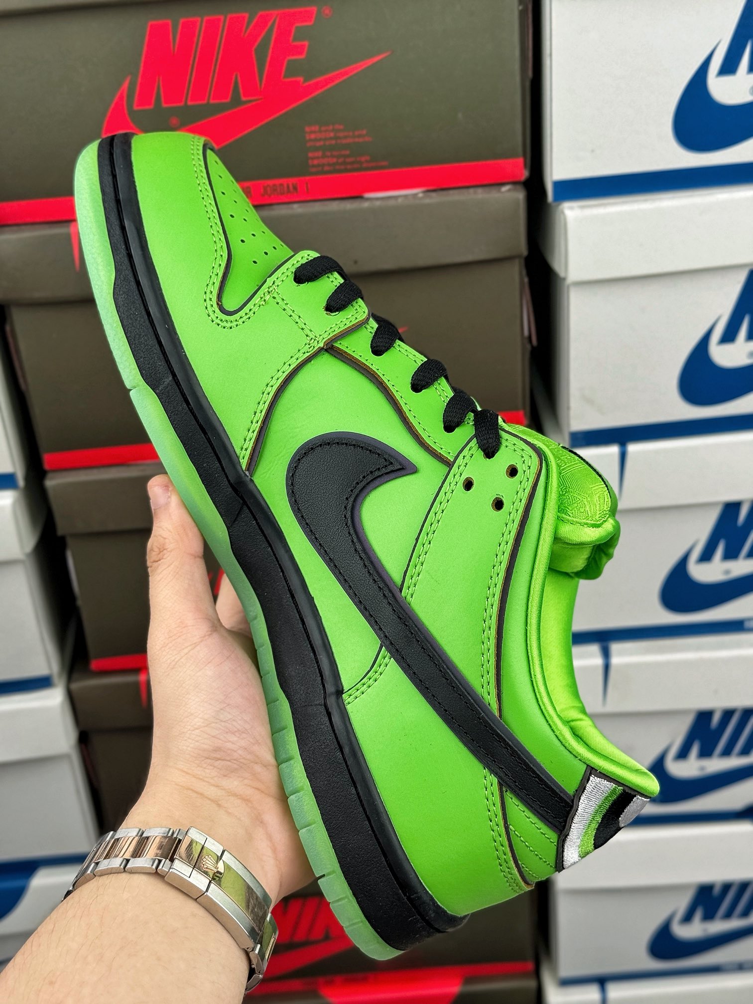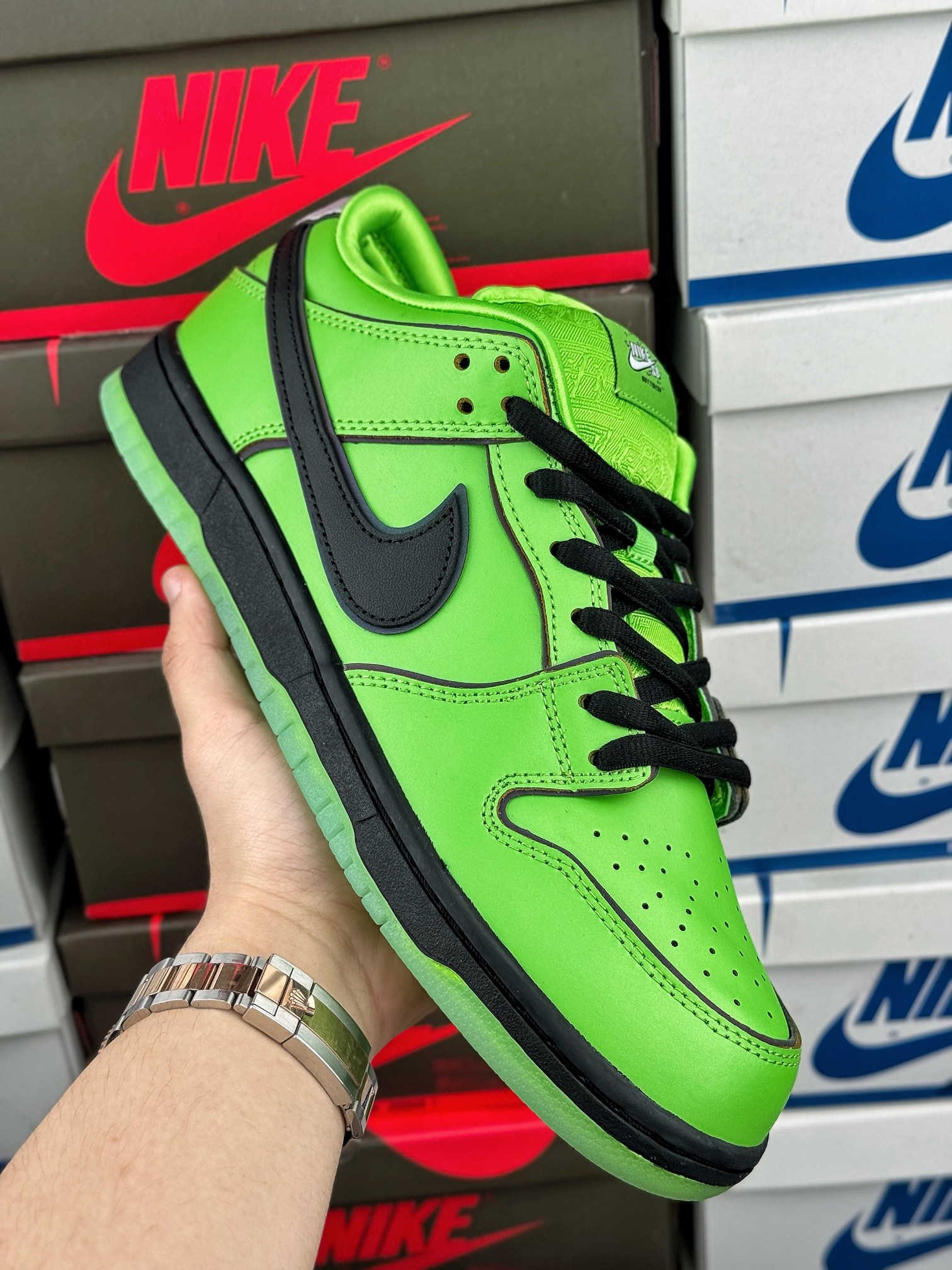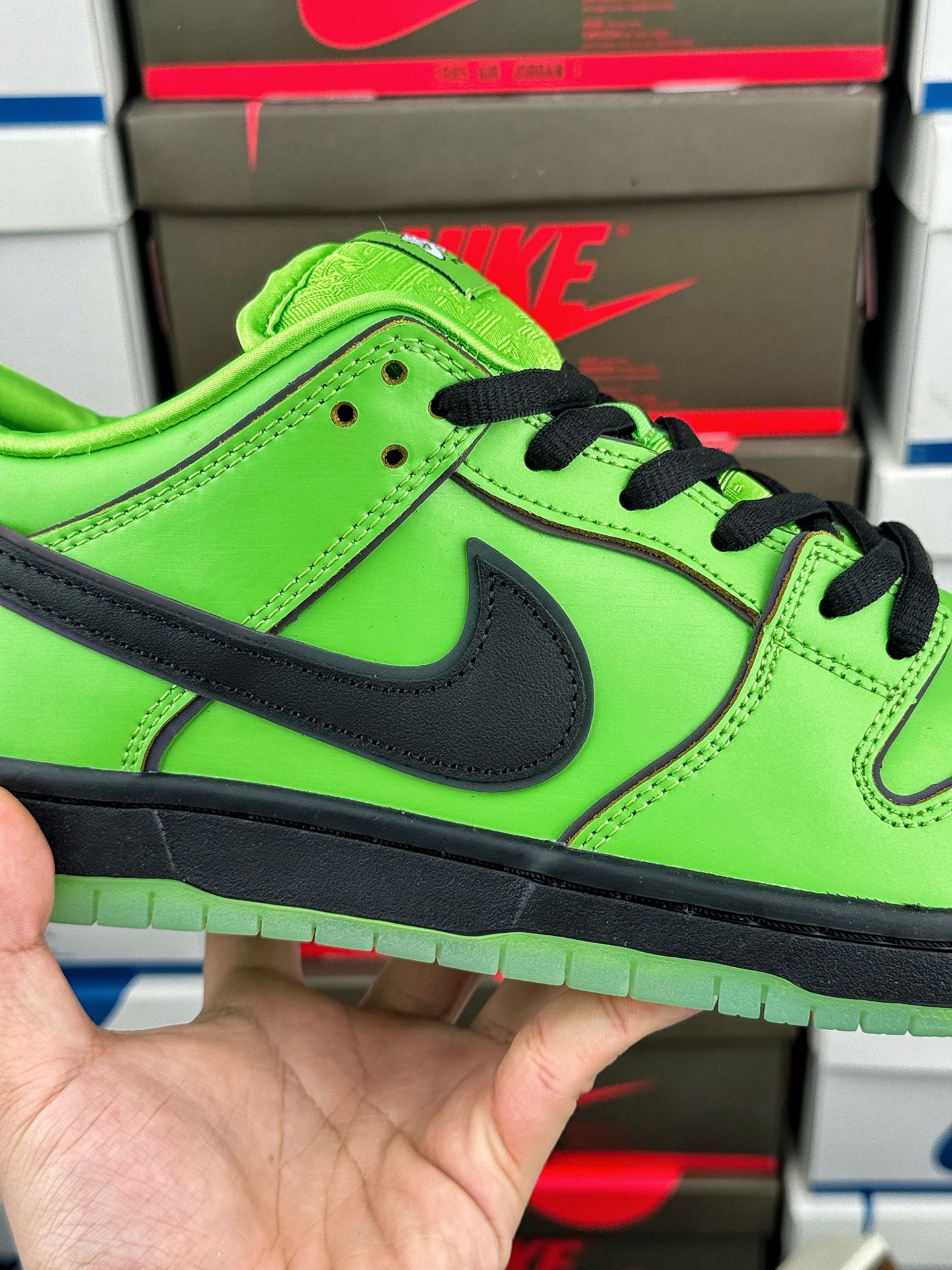 Přijmi odvážné a odvážné s Nike SB Dunk Low The Powerpuff Girls Buttercup. Tato edice zachycuje nebojácnou a tvrdou osobnost Buttercup, která se odráží v barevném provedení Mean Green/Black/Lotus Pink. Designové prvky tenisky jsou dynamické a silné jako samotná Buttercup, což je silné prohlášení.